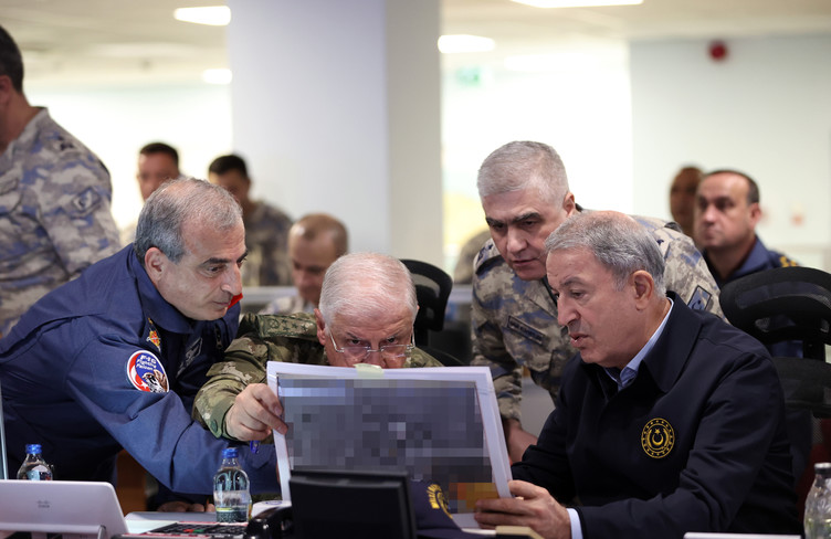 Irak ve Suriye’nin kuzeyindeki terör hedeflerinin tam isabetle vurulduğu Pençe Kılıç Harekatı’nı, Milli Savunma Bakanı Hulusi Akar, beraberindeki Türk Silahlı Kuvvetleri (TSK) komuta kademesi ile Hava Kuvvetleri Harekat Merkezi’nden sevk ve idare etti.