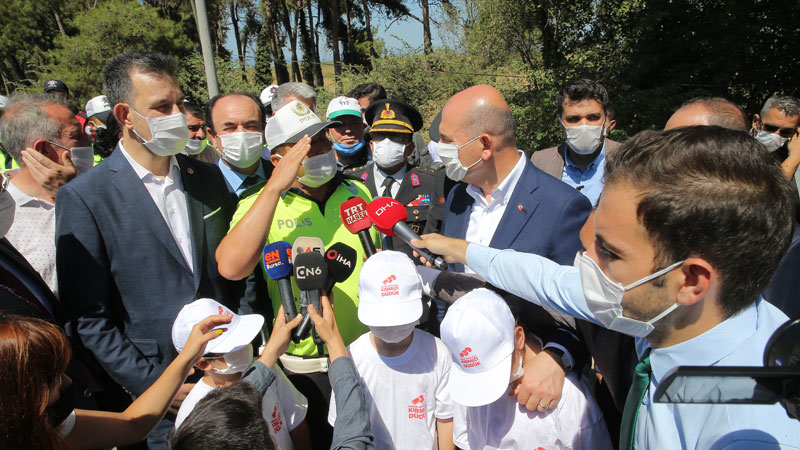 “1,5 saat İzmir-İstanbul yolunu havadan kontrol ettik. Bu standartlar dünyanın bir çok yerinde olmayan standartlar. Hem bu standartlar, hem aldığımız tedbirler, Türkiye’nin sağlık sisteminde, acil durum yönetiminde ortaya koyduğu anlayışla birlikte, trafik kazalarında neredeyse ölümleri Avrupa seviyesine getirme konusunda çabayı hep beraber ortaya koyuyoruz. Yüz binde 9,5tan 6’ya getirdik. Nüfusumuz artıyor ehliyet araç artıyor. 7530 olan 2015 yılındaki ölüm sayımız 5 bin 473 e düştü. 2019 yılı sonunda 2020 yılının 7 ayında 342 azalma var. Bu azalmayı devam ettirirsek Avrupa standartlarında ve onların altına geçme konusundaki irademizi tamamlarız. Cumhurbaşkanımıza teşekkür ediyoruz böyle yol kazandırdığı için, Ulaştırma Bakanlığımıza, AK Parti hükümetlerine teşekkür ediyoruz. Araba, yol, trafik standartları eş olarak gitmektedir. Bu vesileyle bütün vatandaşlarımızın bayramını tebrik ediyoruz. Gözünüzü seveyim dikkat edin. Bayramın sevincini hüzne döndürmeyelim. Tekrar bütün vatandaşlarımıza istirham ve ricamızdır. Trafik kurallarına riayet edelim. Güvenli sürüş, emniyet kemeri bağlamakla başlar. Onun için tekrar bu çocuklarımız da bizim çocuklarımız. Bunların görevi var. Anne baba büyüklerine trafik kurallarına riayet konusunda uyarı yapmaları. Küçükler de büyükleri takdir ederlerse kurallara uyduklarında, etmezlerse kırmızı düdük çalacaklar”