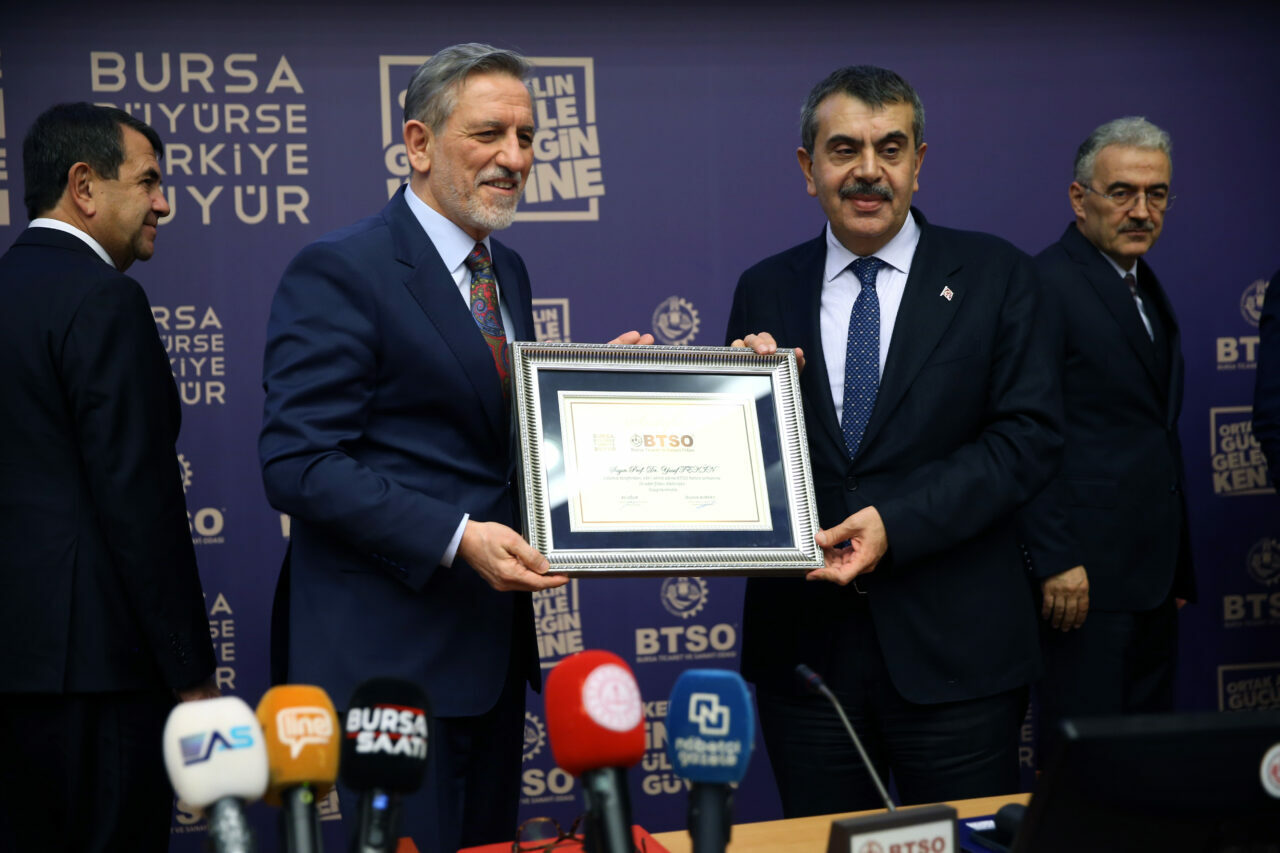 Bakan Tekin’in Bursa Ticaret ve Sanayi Odası’nda (BTSO) düzenlenen “Sektör Buluşması ve Protokol İmza Töreni”nde yaptığı konuşmada, mesleki eğitime verdiği önemi vurguladı.
