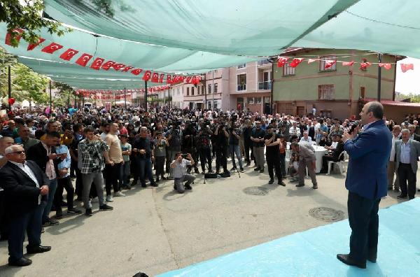 “Bizim medeniyetimizin değerleri var. Biz inanıyoruz ki ekmeğimizi bölüşürsek, soframızda garip gurebayı misafir edersek, onları da bizim sahip olduklarımızdan nasiplendirirsek asla kaybetmeyiz, kazanırız. İşte bu bu sofralar bunun en güzel göstergesi. Yüzyıllardır biz bu sofraları kuruyoruz. Vatandaşlarımıza, kardeşlerimize elimizde olandan ikram etmeye çalışıyoruz. Ama bundan nasiplenmeyenler de var. Bakınız bir deprem hadisesi yaşadık. Ve deprem bölgesindeki vatandaşlarımızın yaralarını sarabilmek, acılarını dindirebilmek için Bursalı hemşehrilerimiz büyük bir gayret gösterdiler. Depremzede vatandaşlarımıza gittiğimizde emin olun her biri şunu söylüyor; ‘Allah Bursalı hemşehrilerimizden razı olsun. Bizi yalnız bırakmadılar. Bizim acılarımızı dindirmek için bizimle beraber oldular. Bize en güzel şekilde ev sahipliği yapıyorlar’. Ama bundan nasipdar olmayanlar da var. Sizler de görüyorsunuz. Deprem bölgesinde farklı siyasi anlayışta olan vatandaşlarımız var, diye, onlara etmedik hakaretleri bırakmayanlar da var. Biz onlardan olmayacağız. Biz heybemizde ne varsa, bunun bir kısmını karınca kararınca vatandaşlarımızla, kardeşlerimizle paylaşmaya devam edeceğiz. Depremzede vatandaşlarımıza hakaret edenlere, onları aşağılayanlara, sadece siyasi görüşü farklı olduğu için, işte bu manevi atmosferden nasiplenemeyenlere de gereken dersi Allah’ın izniyle vereceğiz. Yolumuza aynı kararlılıkla devam edeceğiz.”