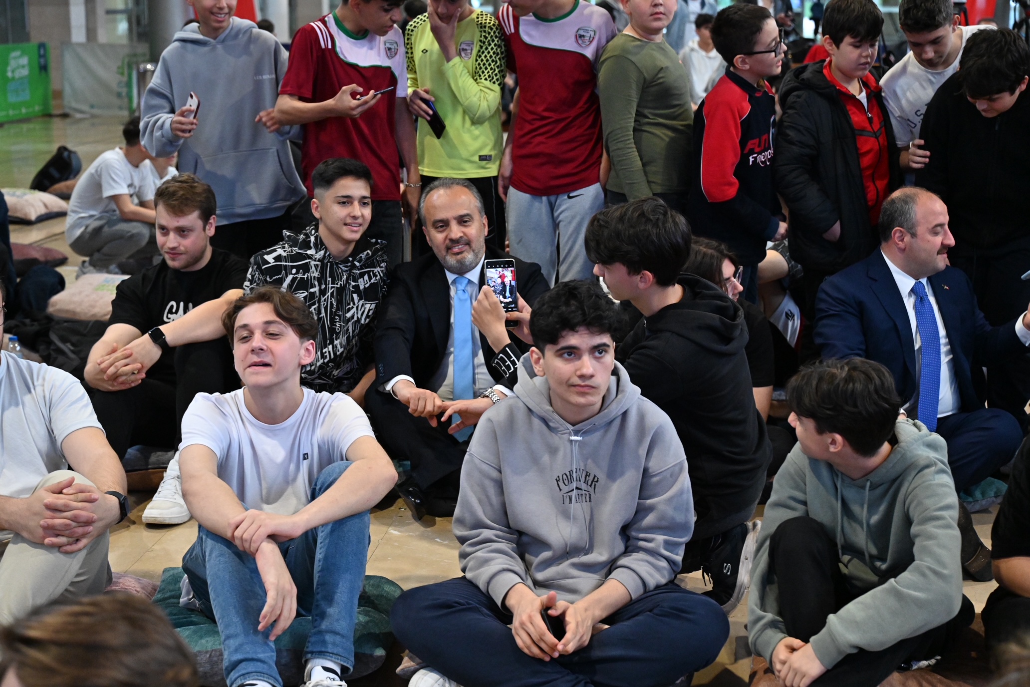 Bursa Büyükşehir Belediye Başkanı Alinur Aktaş, Sanayi ve Teknoloji Bakanı Mustafa Varank ile AK Parti İl Başkanı Davut Gürkan da salona gelerek gençlerin final heyecanına ortak oldu.