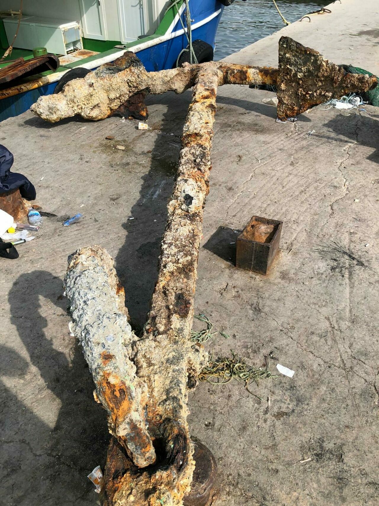 Bir süre sonra balıkçılar ağları tekneye çekmeye başladı. Ağları tekneye çeken balıkçılar yaklaşık 3 tonluk çapayla karşılaştı. Balıkçılar, çapayı tekneye alıp, Geyikli İskelesi’ne getirdi.