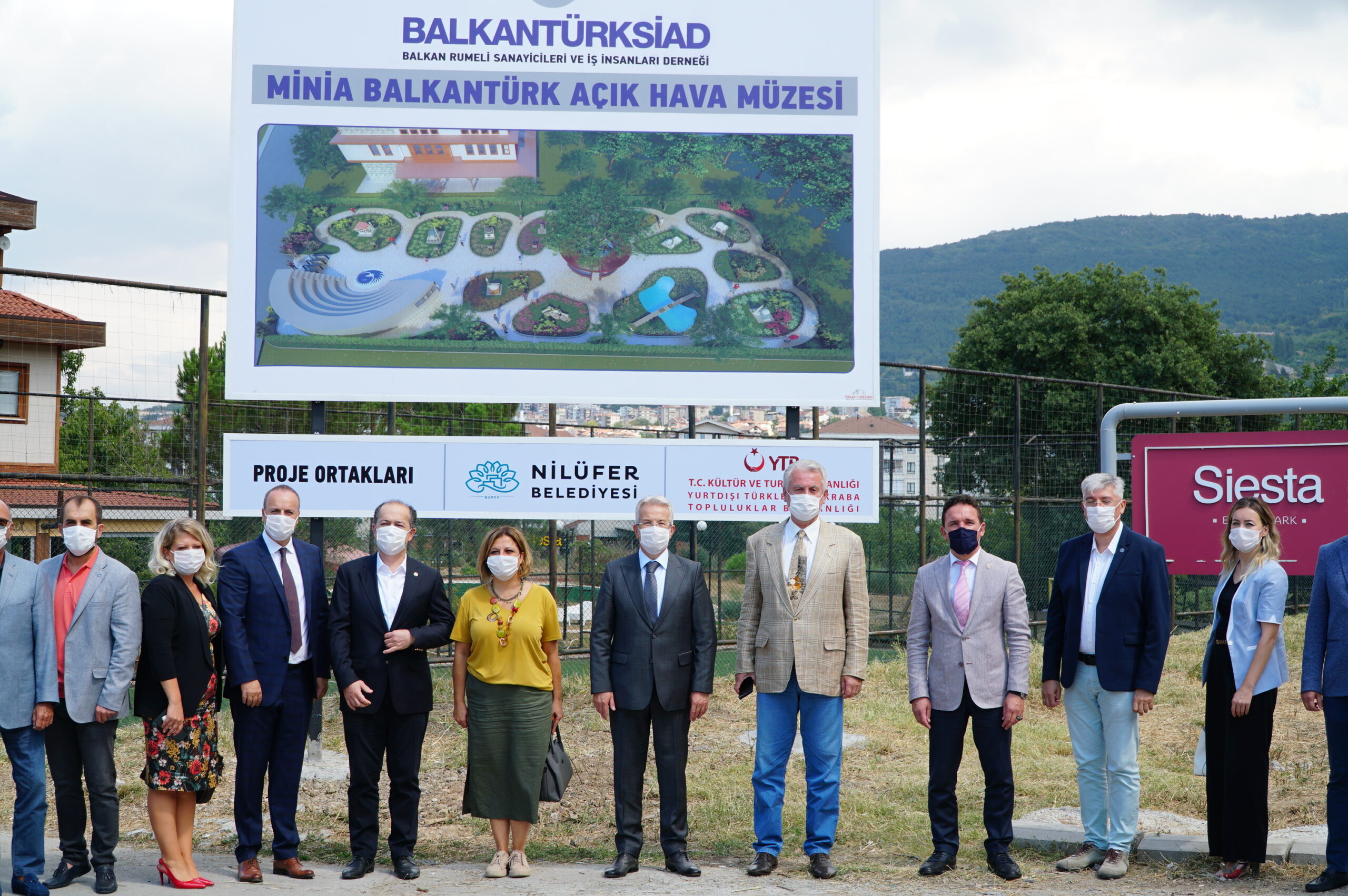 BALKANTÜRKSİAD, Nilüfer Belediyesi ve T.C. Kültür ve Turizm Bakanlığı Yurtdışı Türkler ve Akraba Topluluklar Başkanlığı (YTB) işbirliğinde planlanan “MİNİA BALKANTÜRK Açık Hava Müzesi” kamuoyuna tanıtıldı. BALKANTÜRKEVİ’nde gerçekleştirilen basın toplantısına BALKANTÜRKSİAD Yönetim Kurulu Başkanı Berat Tunakan, Nilüfer Belediye Başkanı Turgay ErdeM, AK Parti Bursa Milletvekili Atilla Ödünç ve dernek üyeleri katıldı. BALKANTÜRKEVİ’nin yanında bin 500 metrekarelik alan üzerine konuşlandırılan projede 12 Balkan ülkesindeki Osmanlı ve Türk eserlerinden oluşan minyatür ve maketler sergilenecek. Minyatür yapım çalışmalarına başlanılan projenin 2020 yılının sonunda tamamlanması planlandı.