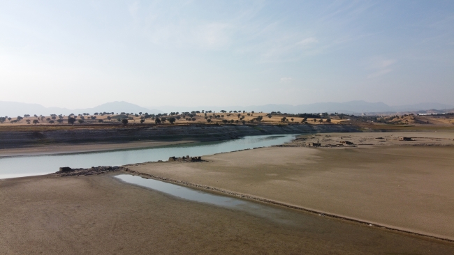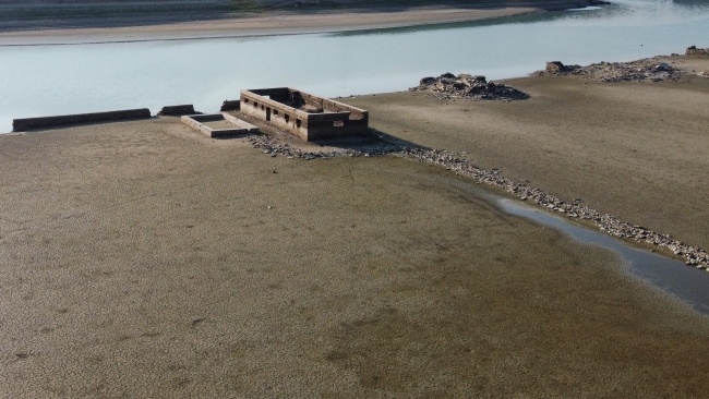 Su altında kalan köy, kurak geçen yılın ardından akarsu ve barajlardaki suyun çekilmesiyle yeniden görünür hale geldi.