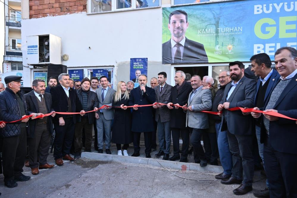 Daha sonra Büyükorhan ilçesine geçen Başkan Alinur Aktaş, ilçe halkını ve esnafını ziyaret ederek görüş ve düşüncelerini dinledi. İlçe teşkilatıyla buluşan Başkan Alinur Aktaş, 5 yıllık süreçte yapılan çalışmaları ve projelerini anlattı.