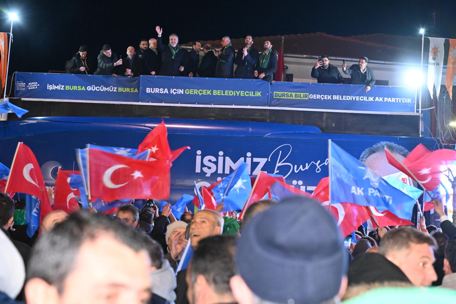 Bursa’da bu dönem altyapıdan ulaşıma, kültürden spora kadar pek çok çalışmayı hayata geçiren ve yeni döneme dair vizyon projelerini açıklayan Büyükşehir Belediye Başkanı ve Cumhur İttifakı Bursa Büyükşehir Belediye Başkan adayı Alinur Aktaş, Osmangazi ilçesi Bağlarbaşı Mahallesi’nde düzenlenen buluşmada meşale ve havai fişek gösterileriyle karşılandı.