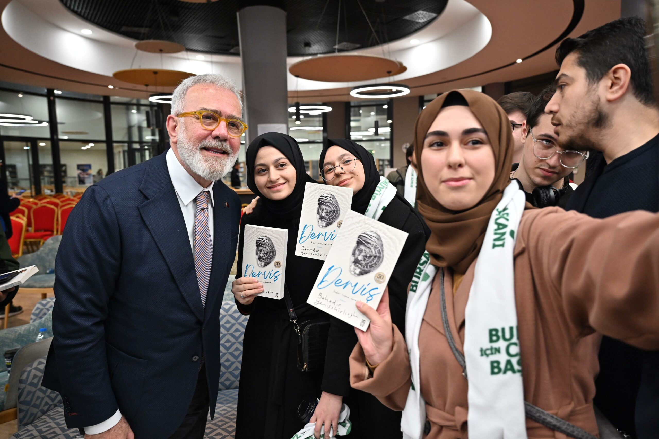 Soru cevap bölümünde gençler Bursa’ya dair hayal ve beklentilerini dile getirirken, Başkan Aktaş ve salonu dolduranlar hep bir ağızdan ‘Beraber yürüdük biz bu yollarda’ şarkısını seslendirdi. Programında sonunda Bahadır Yenişehirlioğlu, Başkan Alinur Aktaş tarafından gençlere hediye edilen ‘Derviş’ isim kitabını imzaladı.