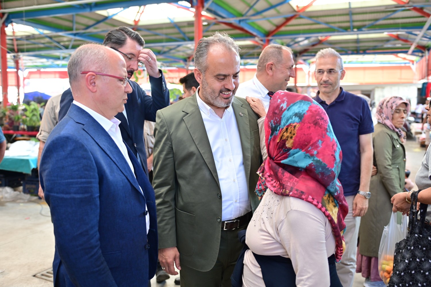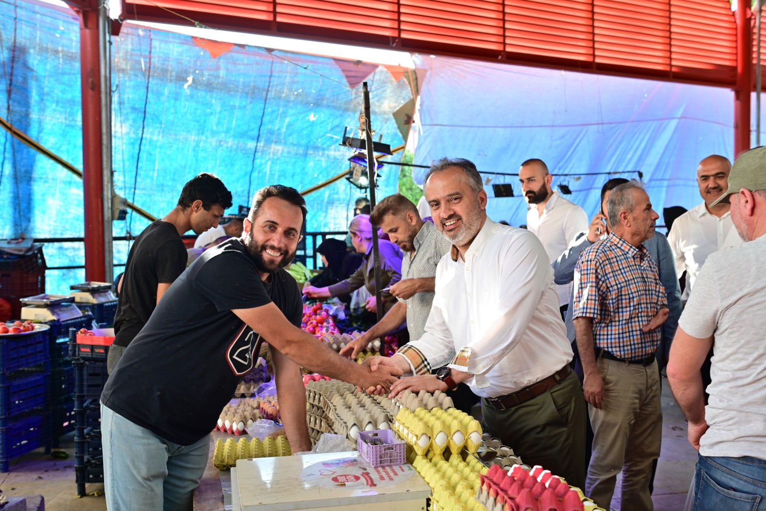 Büyükşehir Belediye Başkanı Alinur Aktaş, Kurban Bayramı öncesinde Panayır Mahallesi’nde kapalı pazaryeri ziyareti gerçekleştirerek, hem bayram alışverişi yapan vatandaşlarla hem de esnafla sohbet etti, halkın bayramını tebrik etti. Başkan Alinur Aktaş daha sonra Veysel Karani Kurban Kesim ve Satış Yeri’ne geçerek, Osmangazi Belediye Başkanı Mustafa Dündar ile birlikte esnaf ziyareti gerçekleştirdi. Türkiye’nin dört bir yanından hayvan satmak için Bursa’ya gelen vatandaşlarla sohbet eden Başkan Aktaş, kurban pazarlığı yapan alıcı ile satıcılar arasında da aracılık etti.