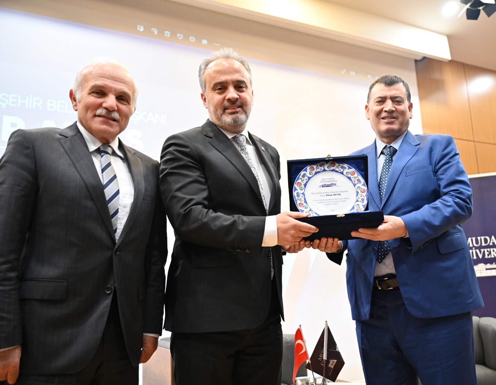 Bursa Büyükşehir Belediye Başkanı Alinur Aktaş, Burulaş Genel Müdürü Kürşat Çapar, BUSKİ Genel Müdürü Güngör Gülenç, Kültür A.Ş. Genel Müdürü Fetullah Bingül, Gençlik ve Spor Hizmetleri Daire Başkanı Nurullah Yıldız, Gençlik Hizmetleri Şube Müdürü Hakan Şanlı ve Müzeler Şube Müdürü Nazım Enes Altan ile birlikte Bursa’nın tek vakıf üniversitesi olan Mudanya Üniversitesini ziyaret etti.