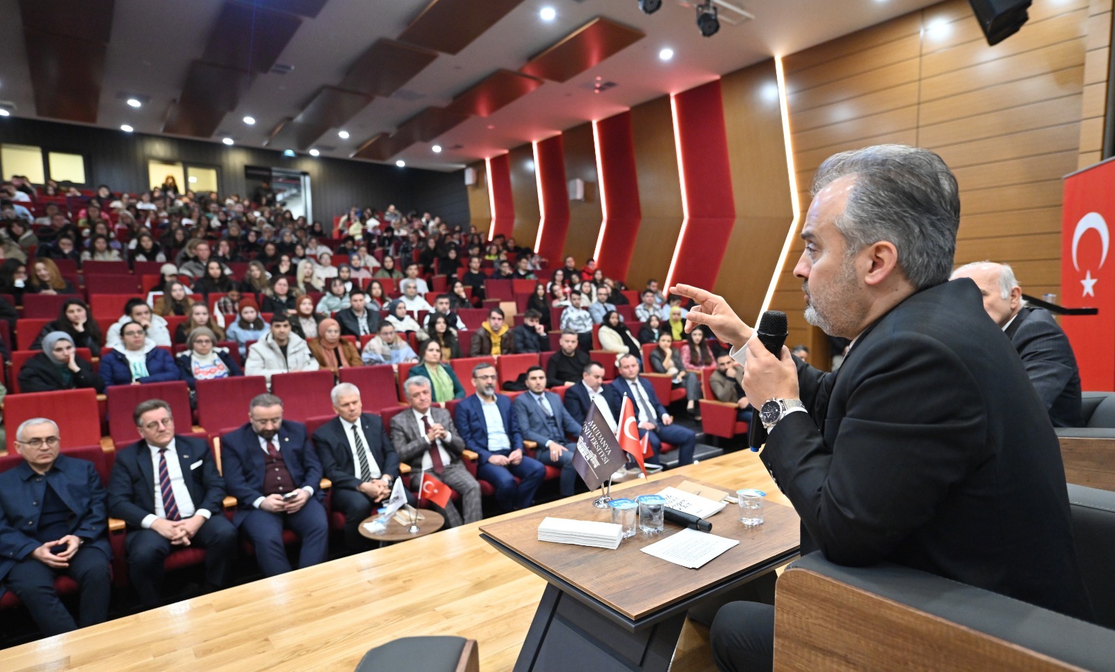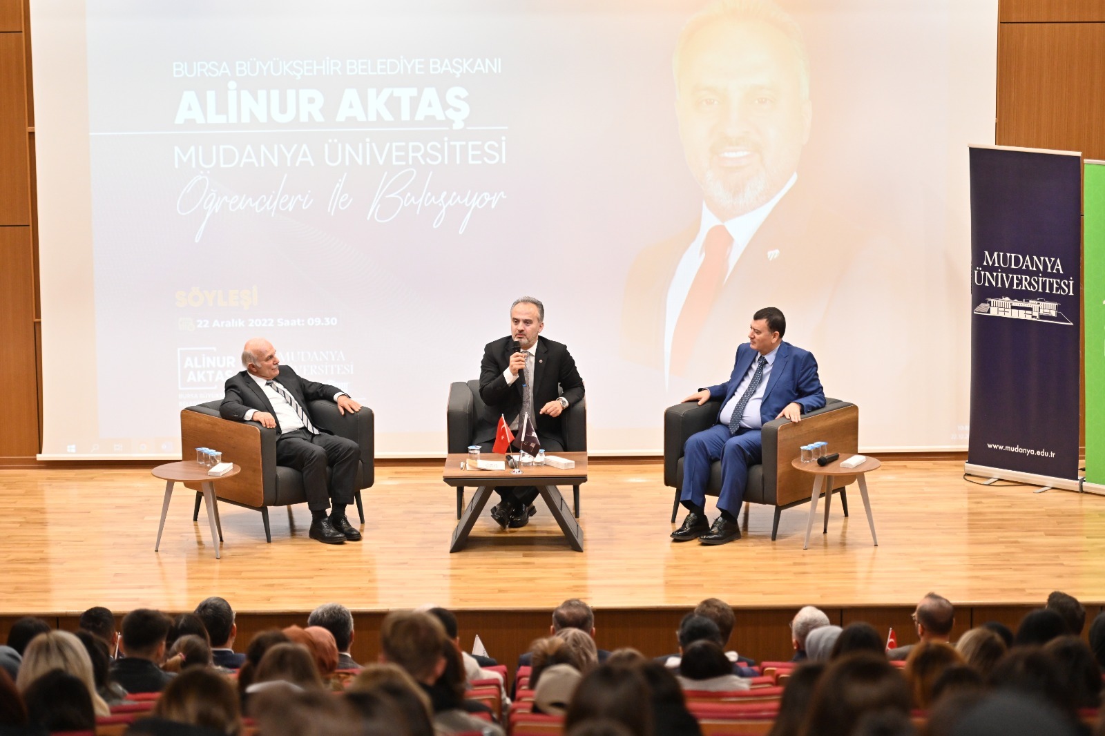Aktaş, ardından Konferans Salonu’nda öğrencilerle bir araya gelerek keyifli bir söyleşi geçekleştirdi. Öncelikle Gıyasettin Bingöl’e böyle bir üniversiteyi Bursa’ya kazandırdığı için teşekkür eden Başkan Aktaş, “Gıyasettin Bey’in bu girişimini ayakta alkışlıyorum. Mudanya Üniversitesi tam bir Bursa üniversitesi olmuş” dedi.