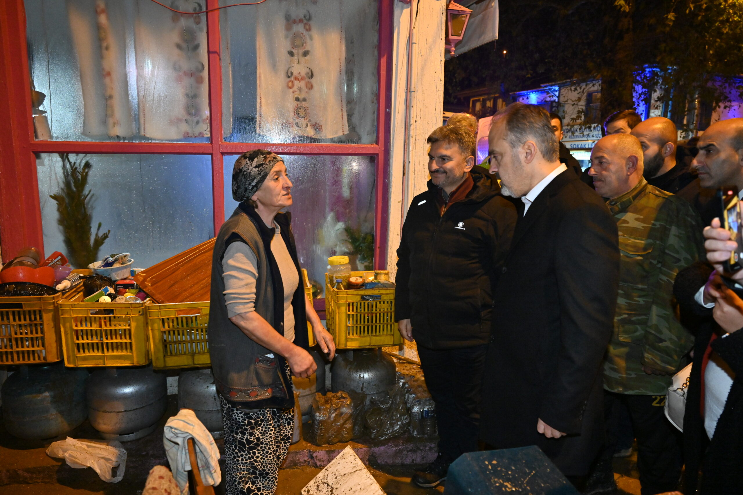 Bursa Büyükşehir Belediye Başkanı Alinur Aktaş, Ankara’daki Genişletilmiş İl Başkanları Toplantısı’nın ardından gece ayağının tozuyla sel felaketinin etkili olduğu Mudanya’nın Tirilye Mahallesi’nde incelemelerde bulundu.