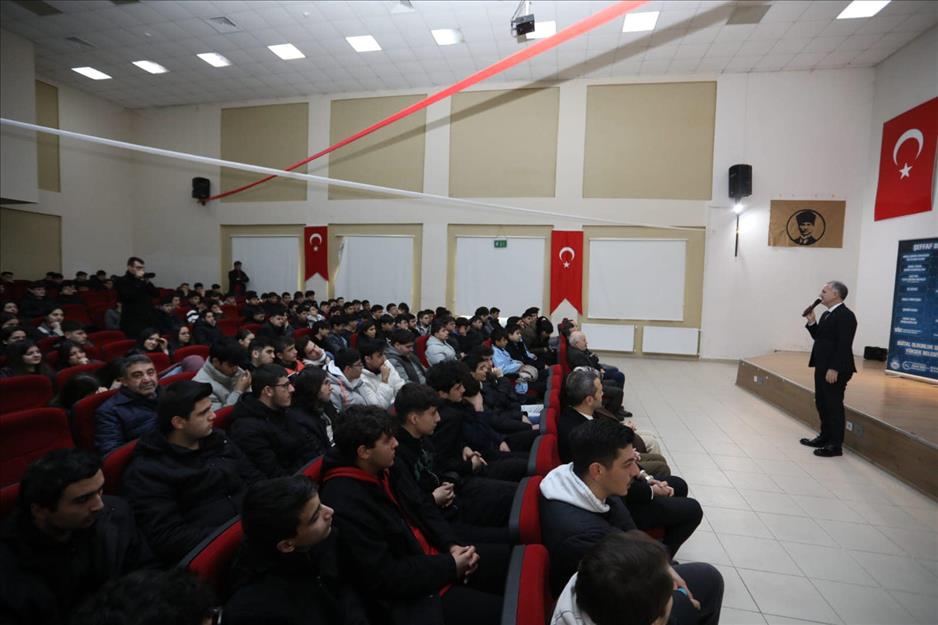Öğrenciler ve okul idarecileri ile öğretmenlerin katıldığı buluşmada Belediye Başkanı Alper Taban programın amacından söz ederek konuşmaya değil, dinlemeye geldiğini söyledi. Başkan Taban, “Ramazan ayının ilk gecesini bu akşam yaşayacağız. Ramazanınızı kutluyorum. Çok yakın bir zaman önce de yine bu salonda kampüsün başka okullarındaki öğrencilerimizle buluştuk. Geçtiğimiz yıllarda da yine buraya geldiğimi hatırlıyorum. Tabi bu geliş gidişler niye diye düşünebilirsiniz. Sizin için ne yapabilirim noktasında bu buluşmaları gerçekleştiriyoruz. Çok kıymetli bir ekibimiz var. Yaklaşık 900 kişilik çalışma arkadaşlarım var. Her biri kendi alanında uzmanlığı olan ve benden daha eski olan, bu kurumda yıllardır hizmet eden arkadaşlarımız var. Onların da bilgi birikimi ve tecrübesiyle, sizlerin de beklentilerini karşılayacak işler yapmak istiyoruz. Bugünkü programımız Genç Bakış Programı. Sabah namazında Sanayi Camisinde vatandaşlarımızla buluştuk, onların beklentilerini dinledik. Zaman zaman hanımefendilerle, özel bireylerle, fırsat bulduğumuz her ortamda herkesi dinlemeye gayret ediyoruz” diye konuştu.