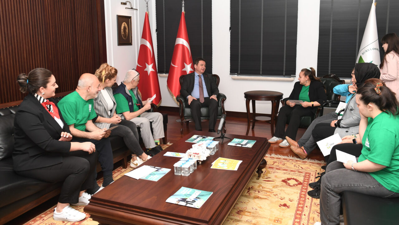 Osmangazi Belediye Başkanı Erkan Aydın, 10-16 Mayıs Dünya Engelliler Haftası kapsamında OBAM üyeleri Nihan Kardaşko, Fatih Diden, Melike Kırço, Eslem Mert, Kadriye Dokumacı ve Ertan Ataş’ı makamında ağırladı. OBAM sakinleri ile yakından ilgilenen ve ziyaret süresince neşelerine, enerjilerine ve mutluluklarına ortak olan Başkan Aydın, engelli bireylerin toplumsal hayata tam katılımı için yürütülen çalışmaların önemine vurgu yaptı.