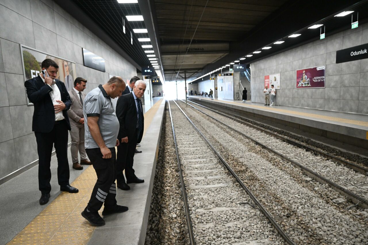 Bursa Büyükşehir Belediye Başkanı Mustafa Bozbey, seferlerin normale döndüğü ve sorunsuz ulaşımın sağlandığı Odunluk İstasyonu’nu ziyaret ederek incelemelerde bulundu.