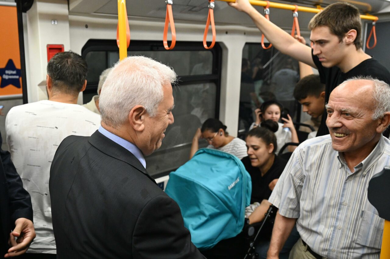 Odunluk İstasyonu’ndan Merinos İstasyonu’na kadar BursaRay ile yolculuk yapan Başkan Mustafa Bozbey, vatandaşlarla samimi bir şekilde sohbet ederek ulaşım konusundaki talep ve görüşlerini dinledi.