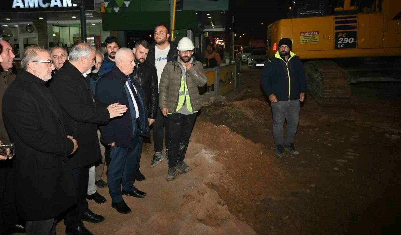 Bursa Büyükşehir Belediye Başkanı Mustafa Bozbey İnegöl’de devam eden çalışmaları yerinde inceleyerek, son durum hakkında BUSKİ ekiplerinden bilgi aldı. CHP İlçe Başkanı Zemci Şahin ile birlikte esnafı ziyaret ederek sohbet eden ve İnegöl’de iki tane önemli çalışma yürüttüklerini anlatan Başkan Bozbey, “İnegöl’ün altyapısı çok eski ve asbestli borulardan oluşuyor. Yüzde 55’in üzerinde kayıp kaçak oranı var. Bu sistemi değiştirmemiz gerekiyordu. Bizler göreve gelir gelmez halkımızın sağlığını düşünerek İnegöl’ü besleyecek isale hattının yapılması ve içme suyu şebekesinin iyileştirilmesi noktasında çalışmaya başladık. Aslında her ikisinin de önceki yıllarda yapılması ve tamamlanması gerekiyordu. Bizler tüm İnegöl’de içme suyunun sağlıklı bir şekilde tüketilebilmesi için çaba harcıyoruz” dedi.
