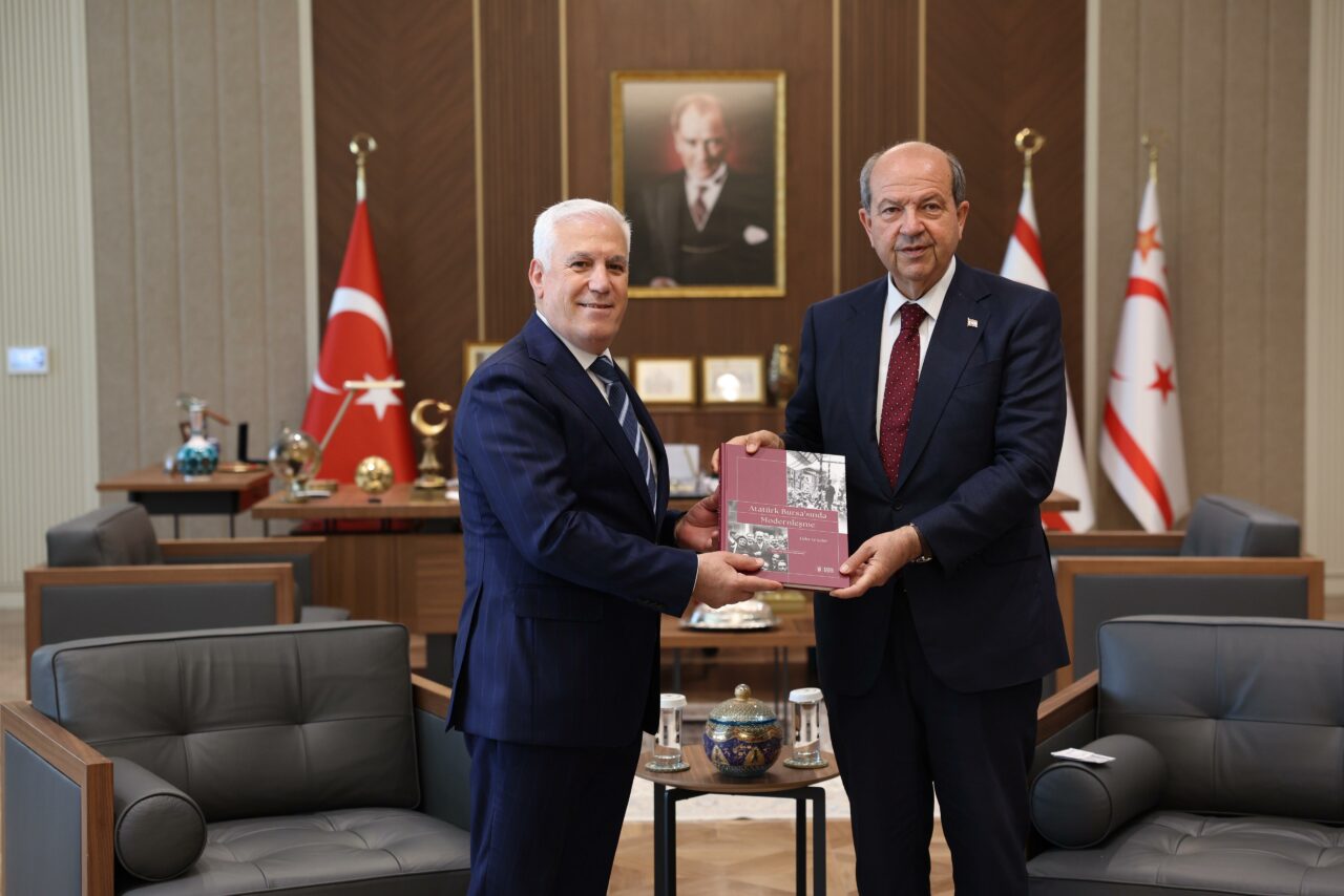 CHP Bursa Milletvekili Hasan Öztürk ve Büyükşehir Belediyesi yöneticilerinin de yer aldığı ziyarette Başkan Mustafa Bozbey, KKTC Cumhurbaşkanı Ersin Tatar’ı makamında ziyaret etti.