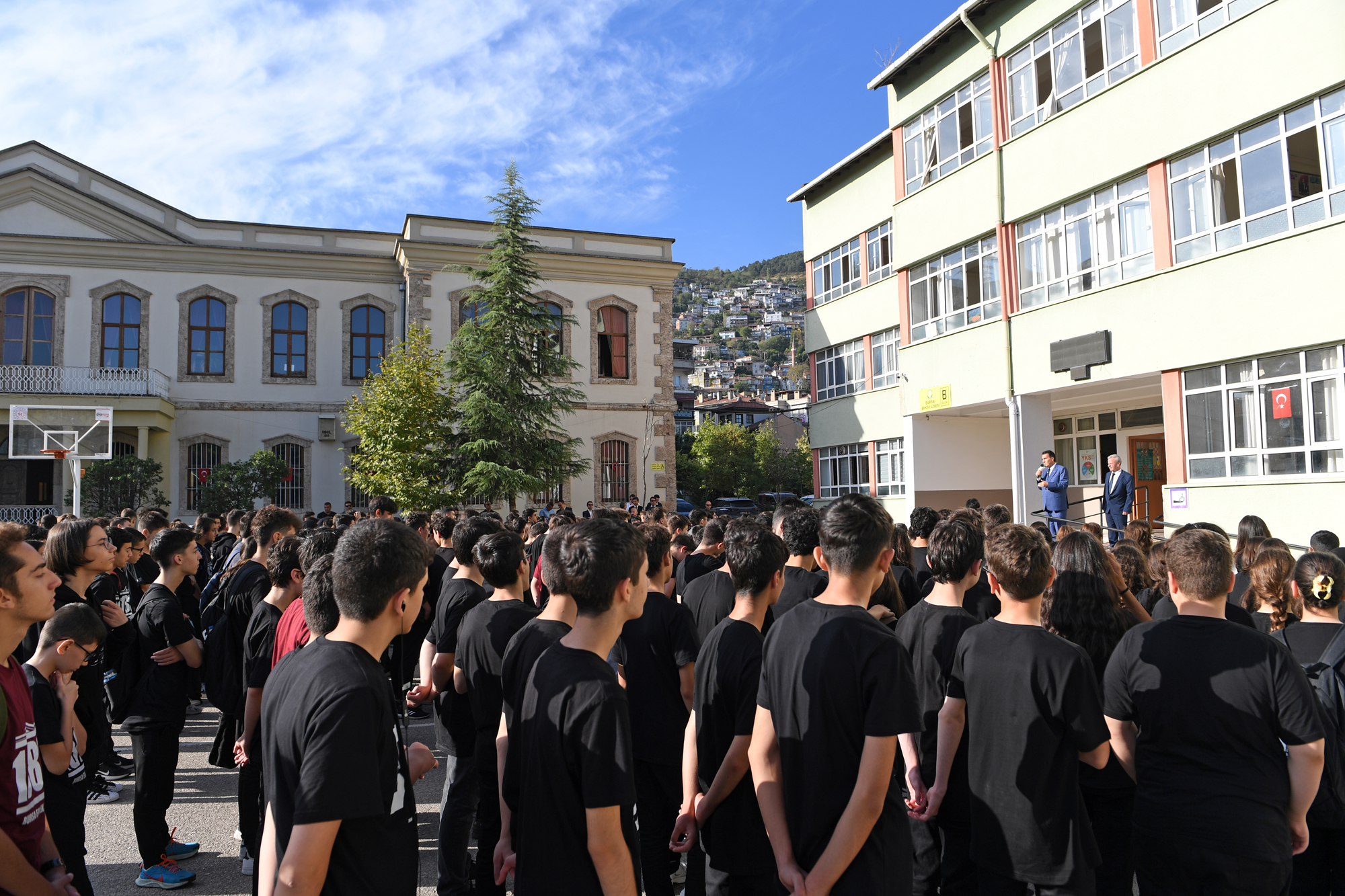 Başkan Dündar, Türkiye’nin en eski okullarından biri olan Bursa Anadolu Erkek Lisesi’nde öğrencilerle bir araya geldi.