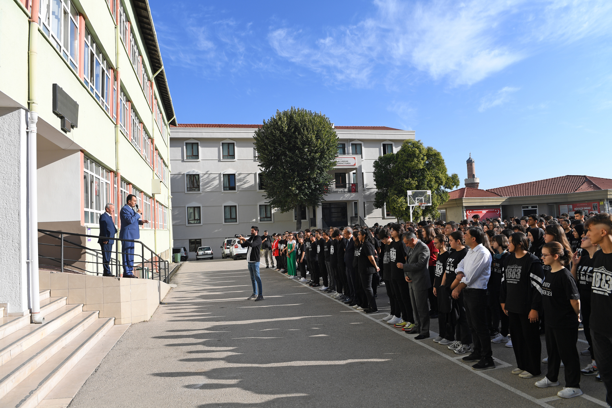 Osmangazi Belediye Başkanı Mustafa Dündar, Osmangazi Kaymakamı Ali Partal ile birlikte tarihi lisedeki sınıfları gezerek öğrencilere yardımcı kitap seti hediye etti.