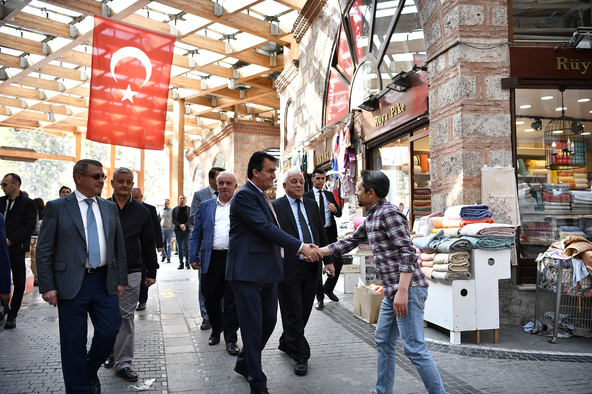 Ertaş Çarşısı’ndan başladıkları gezilerinde sırasıyla Kapalı Çarşı, Alt Çarşı ve Uzun Çarşı’yı gezerek esnafı ziyaret eden Osmangazi Belediye Başkanı Mustafa Dündar ve Bursa Esnaf ve Sanatkârlar Odalar Birliği (BESOB) Başkanı Fahrettin Bilgit, esnafın sıkıntılarını ve taleplerini dinleyerek hayırlı işler diledi.