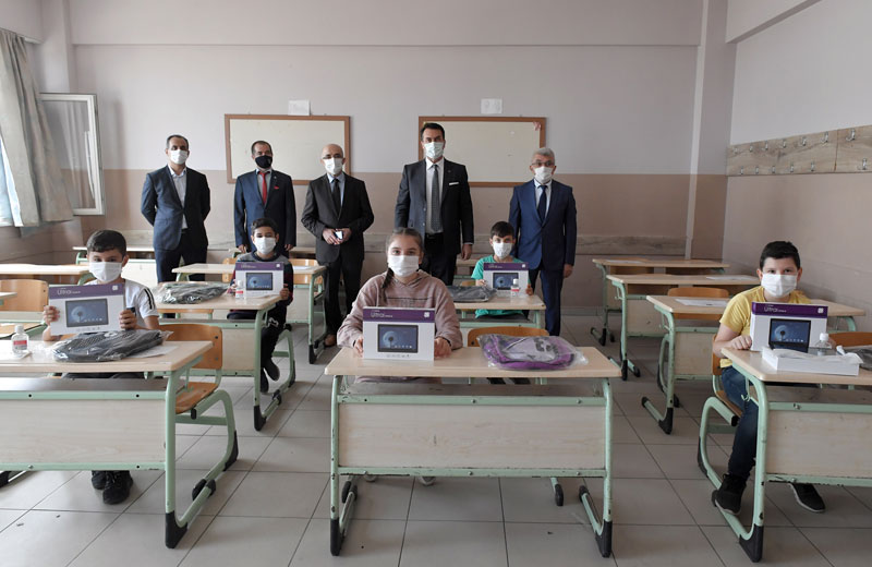 Osmangazi Belediye Başkanı Mustafa Dündar, evinde tablet bulunmayan öğrencilerin uzaktan eğitimden geri kalmamaları için önemli bir projeye imza attı. Başkan Dündar, İlçe Milli Eğitim Müdürlüğü tarafından belirlenen Meliha-Cemal Bağcı Ortaokulu’ndaki öğrencilere tablet dağıttı. Tabletin yanı sıra çanta, maske ve dezenfektan hediye edilen öğrencilerin mutluluğu gözlerinden okundu. EBA üzerinden eğitim gören öğrencilerle sohbet eden Başkan Dündar, salgına karşı temizlik, maske ve sosyal mesafeye dikkat edilmesi konusunda da tavsiyelerde bulundu.