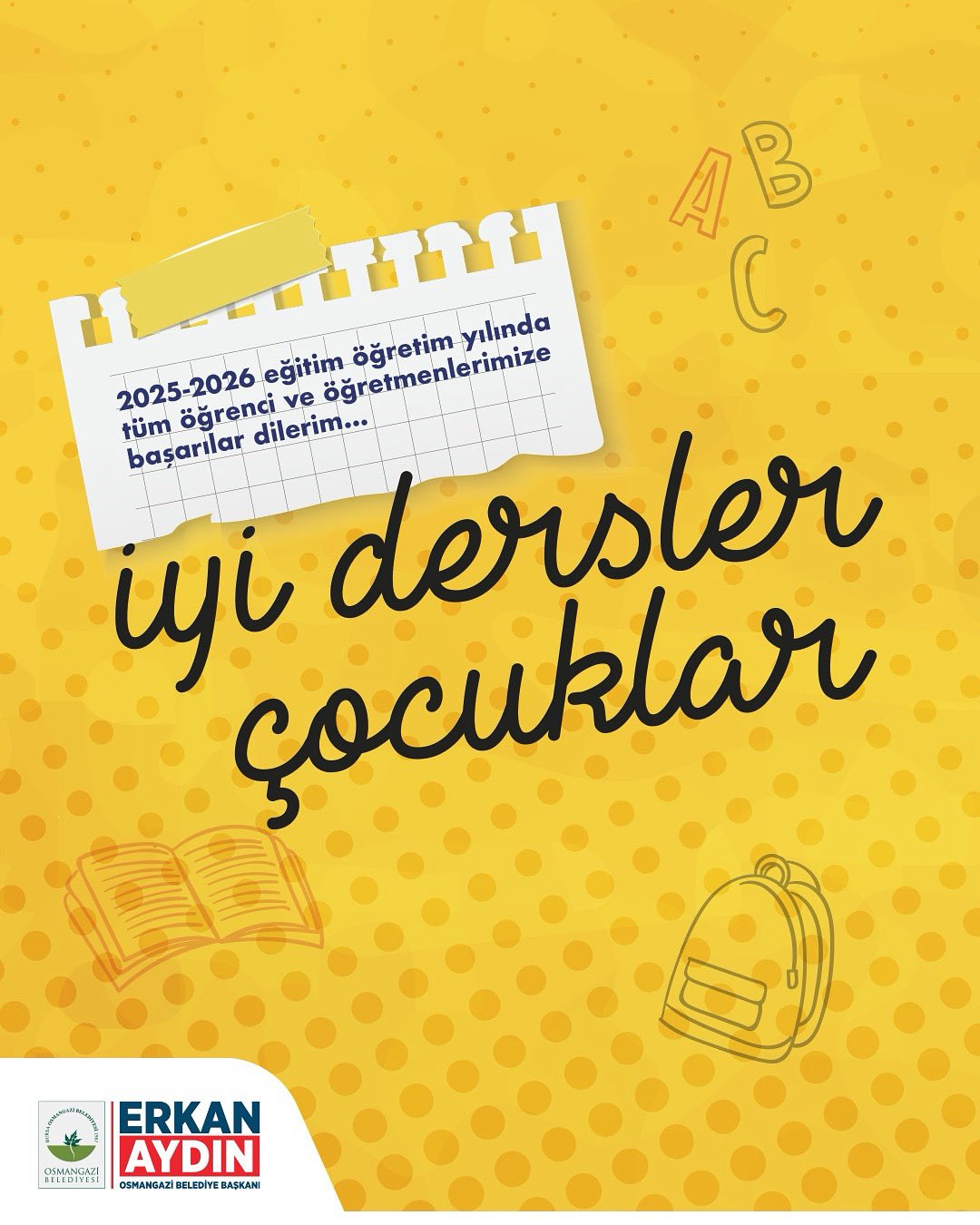 Osmangazi Belediye Başkanı Erkan Aydın, yeni eğitim-öğretim yılı dolayısıyla mesaj yayınladı.