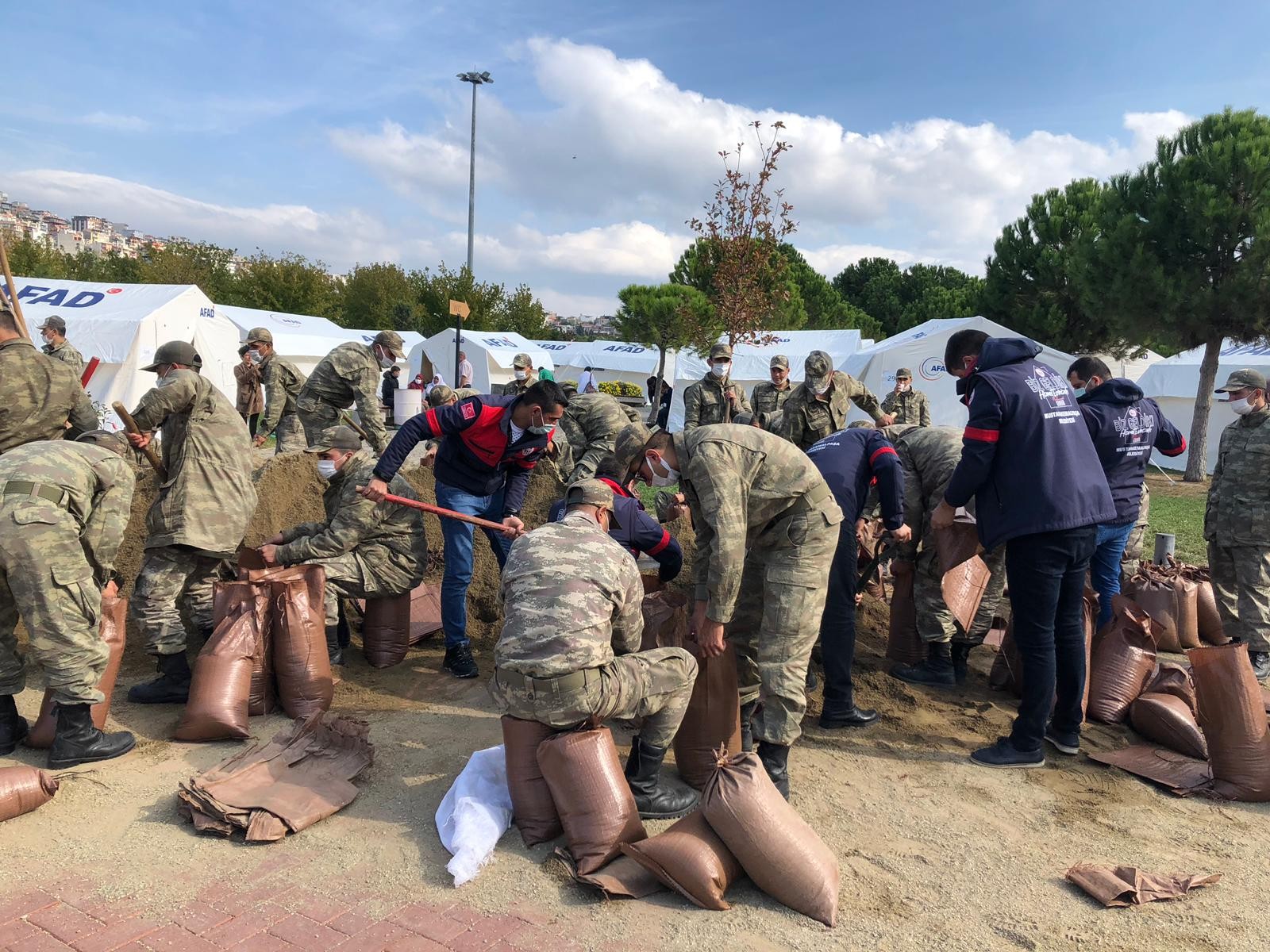 Mobil saha ekibi daha sonra İzmir’deki çadırları ziyaret ederek depremzedelere ve görevli personele Mustafakemalpaşa Peynir Tatlısı ve çeşitli ikramlarda bulundu.