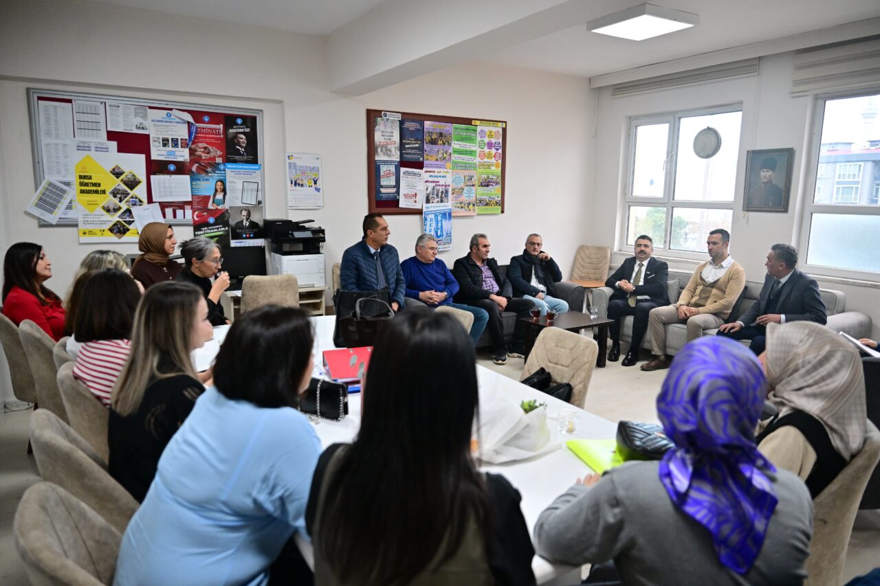 Başkan Oktay Yılmaz, Öğretmenler Günü’nün ikinci programında ise Merkez İmam Hatip Lisesi öğretmenleriyle kahvaltıda buluştu. Mümine Şeremet Uyumayan Kütüphanesi’nde gerçekleştirilen buluşmaya Başkan Oktay Yılmaz’ın yanı sıra, AK Parti İl Başkanı Davut Gürkan ve AK Parti Yıldırım İlçe Başkanı İrfan Akkaya da katıldı. Programda yaptığı konuşmada öğretmenliğin bizim kültürümüzde çok önemli ve saygın bir yeri olduğunu vurgulayan Başkan Oktay Yılmaz; “Öğretmenlik denilince ilk aklımıza gelen aşktır, sevdadır, fedakârlıktır. Öğretmenlerimiz ülkemizin her köşesinde emanet ettiğimiz çocuklarımızı ilimle, bilgi ile buluşturan kahramanlarımızdır. Öğretmen akıldan çok kalpleri inşa eder. Öğretmenlik bizim nazarımızda hep bir medeniyet, kültür taşıyıcısı olarak vasıflandırılmıştır. Eli öpülesi, hürmete layık ve en yüksek mertebede gördüğümüz öğretmenlerimiz her zaman insan yetiştiren, insanı imar eden bir gönül mimarı olarak görülmüştür” ifadelerini kullandı.