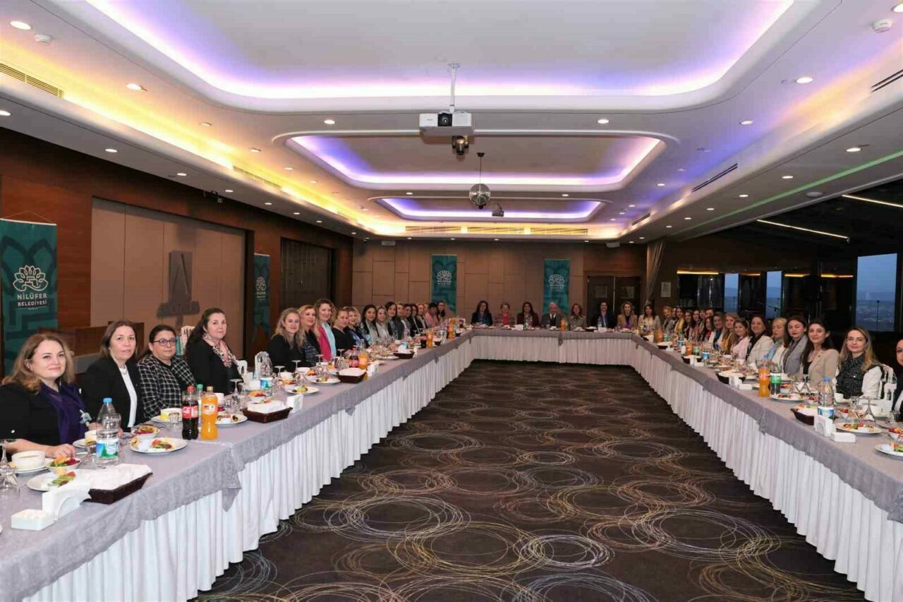 Nilüfer Belediye Başkanı Şadi Özdemir, eşi Nuray Özdemir ile birlikte 8 Mart Dünya Kadınlar Günü nedeniyle kadın muhtarlar, belediye meclis üyeleri, başkan yardımcıları ve müdürlerle iftar yemeğinde buluştu.