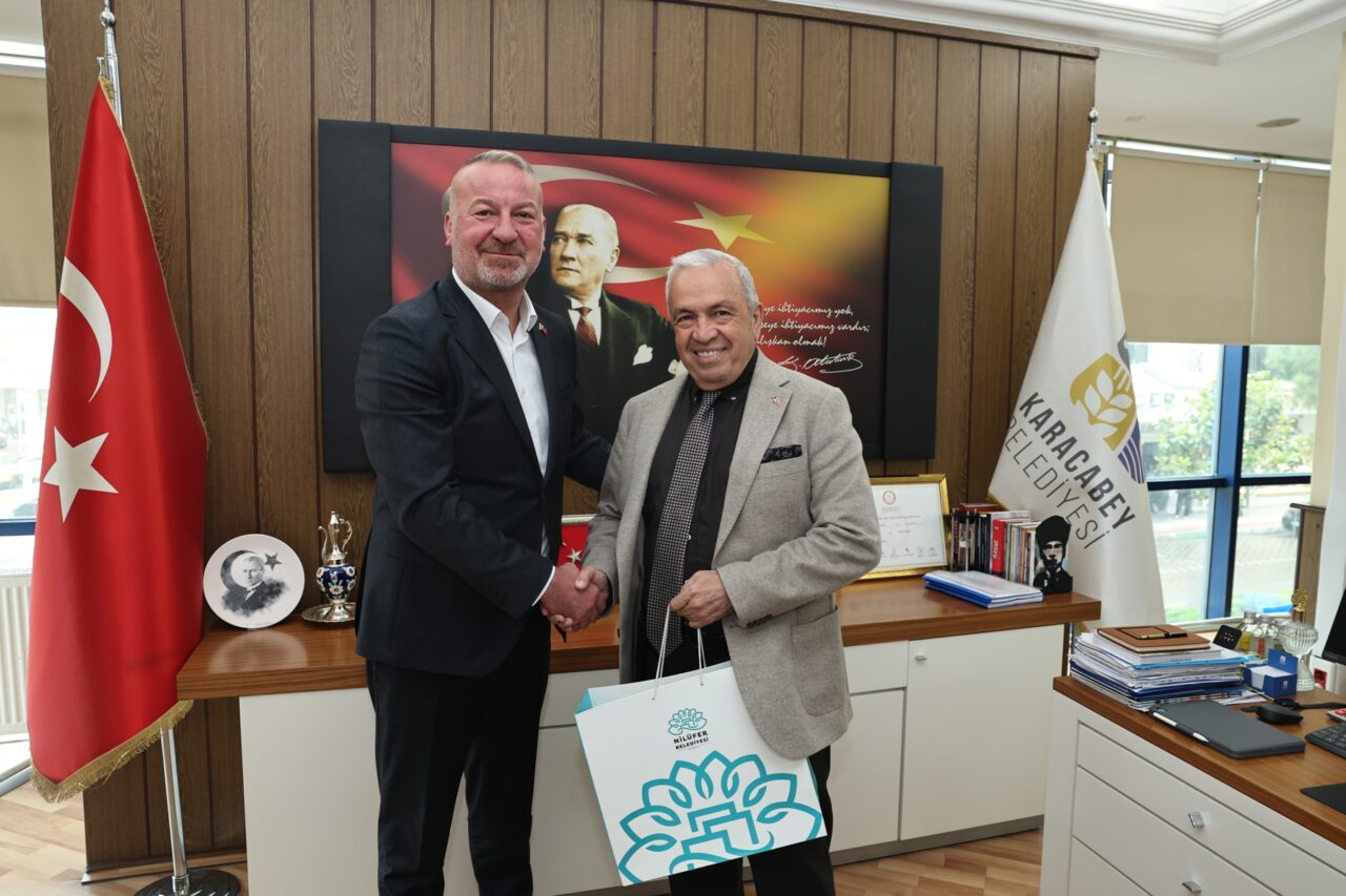 Mustafakemalpaşa’daki görüşmelerinin ardından Başkan Şadi Özdemir’in bir sonraki durağı Karacabey oldu. Karacabey Belediye Başkanı Fatih Karabatı’yı makamında ziyaret eden Başkan Şadi Özdemir, bölge turizminin geliştirilmesi ve daha güçlü bir turizm potansiyeli oluşturulması amacıyla yapılabilecek ortak çalışmaları masaya yatırdı.