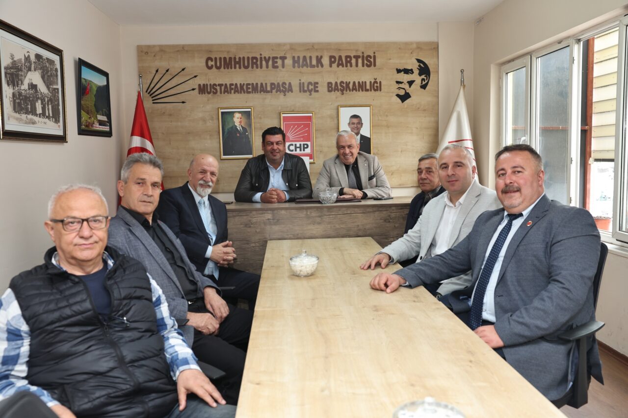 Başkan Şadi Özdemir, daha sonra CHP Mustafakemalpaşa İlçe Başkanı Gökhan Demir ve ilçe yönetimiyle bir araya geldi. Partinin ilçe binasındaki görüşmede Başkan Şadi Özdemir ve Demir, yerelde yapılabilecek çalışmaları ele aldı.
