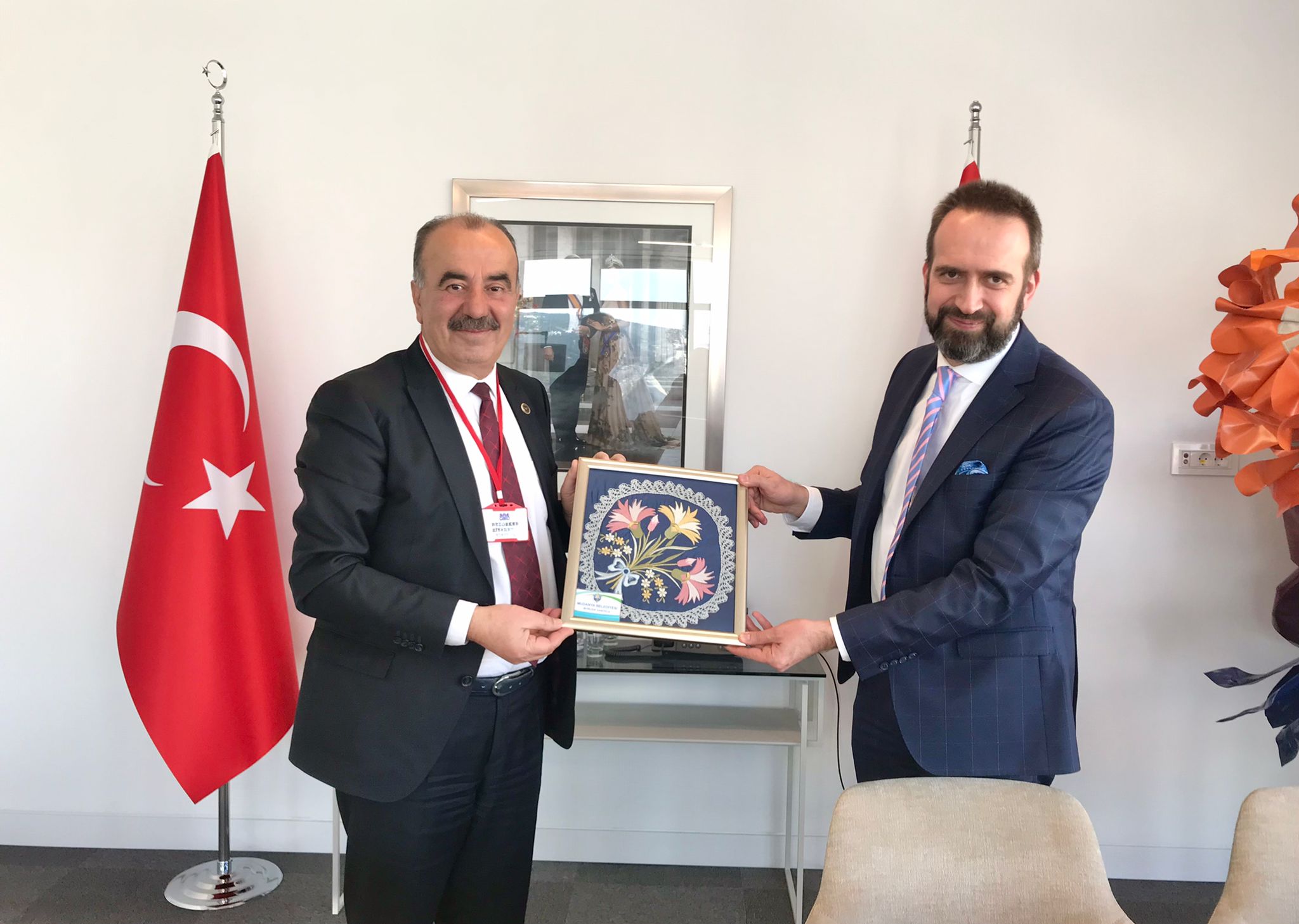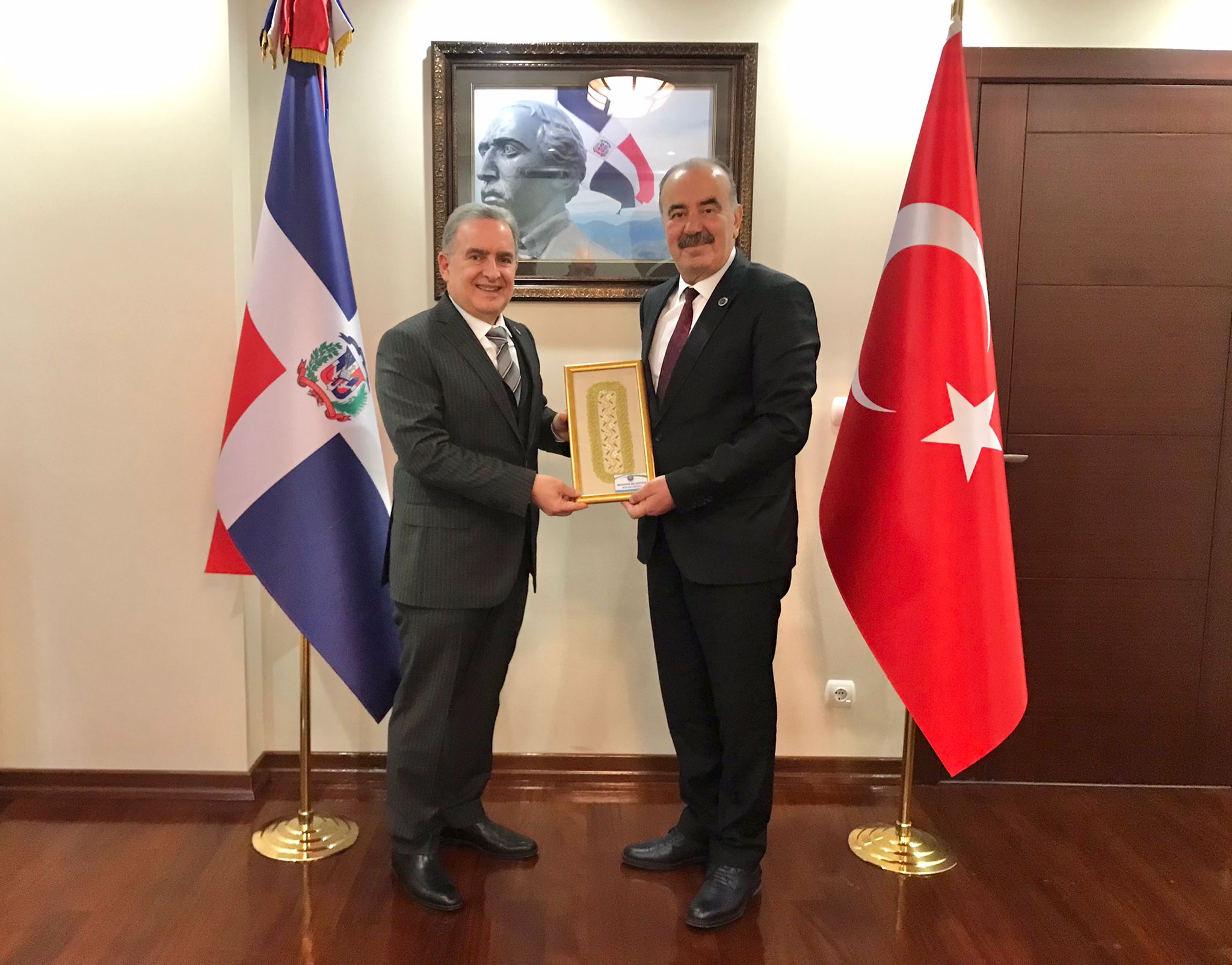 Dominik Cumhuriyeti’nden San Pedro de Macoris kenti ile ön kardeşlik protokolüne imza atan Büyükelçi Elvis Antonio Alam ile makamında bir araya gelen Başkan Türkyılmaz, dostluk ve barış unsurlarını sağlam bir şekilde sürdürmek için sosyal, kültürel, ekonomik alanda yapılacak ortak çalışmalarla ilgili fikir alışverişinde bulundu.