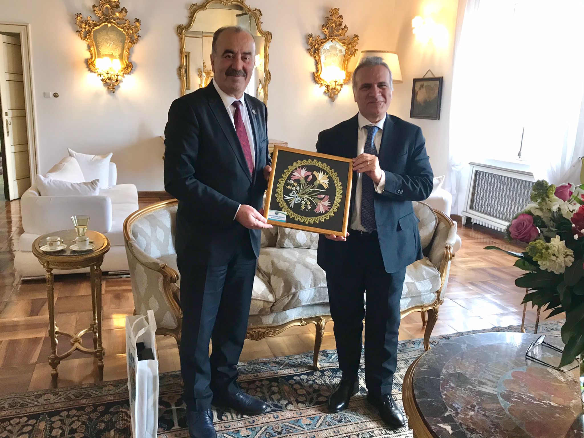 İtalya Büyükelçisi Giorgio Marrapodi ile makamında bir araya gelen Türkyılmaz, “Prof. Francesco Luigi Cinelli’nin bilimsel danışmanlığını yaptığı Calabria Bölgesi kıyı ve deniz hattı temizleme ve düzenleme projesinin bir benzerini Mudanya kıyı ve deniz hattı için düşünüyoruz. Bu kapsamda diğer çevre dostu ülkeler ile ortak uluslararası bir çalışma yapmayı planlıyoruz” ifadelerini kullandı. Başkan Hayri Türkyılmaz, SHP geçmiş dönem Genel Başkanı, Başbakan Yardımcısı, Dışişleri Bakanı ve Ankara Büyükşehir Belediye Başkanı Murat Karayalçın ile bir araya gelerek Mudanya Deniz Çalıştayı sonrası gerçekleştirilen temaslar ve çalışmalar hakkında bilgi verdi.