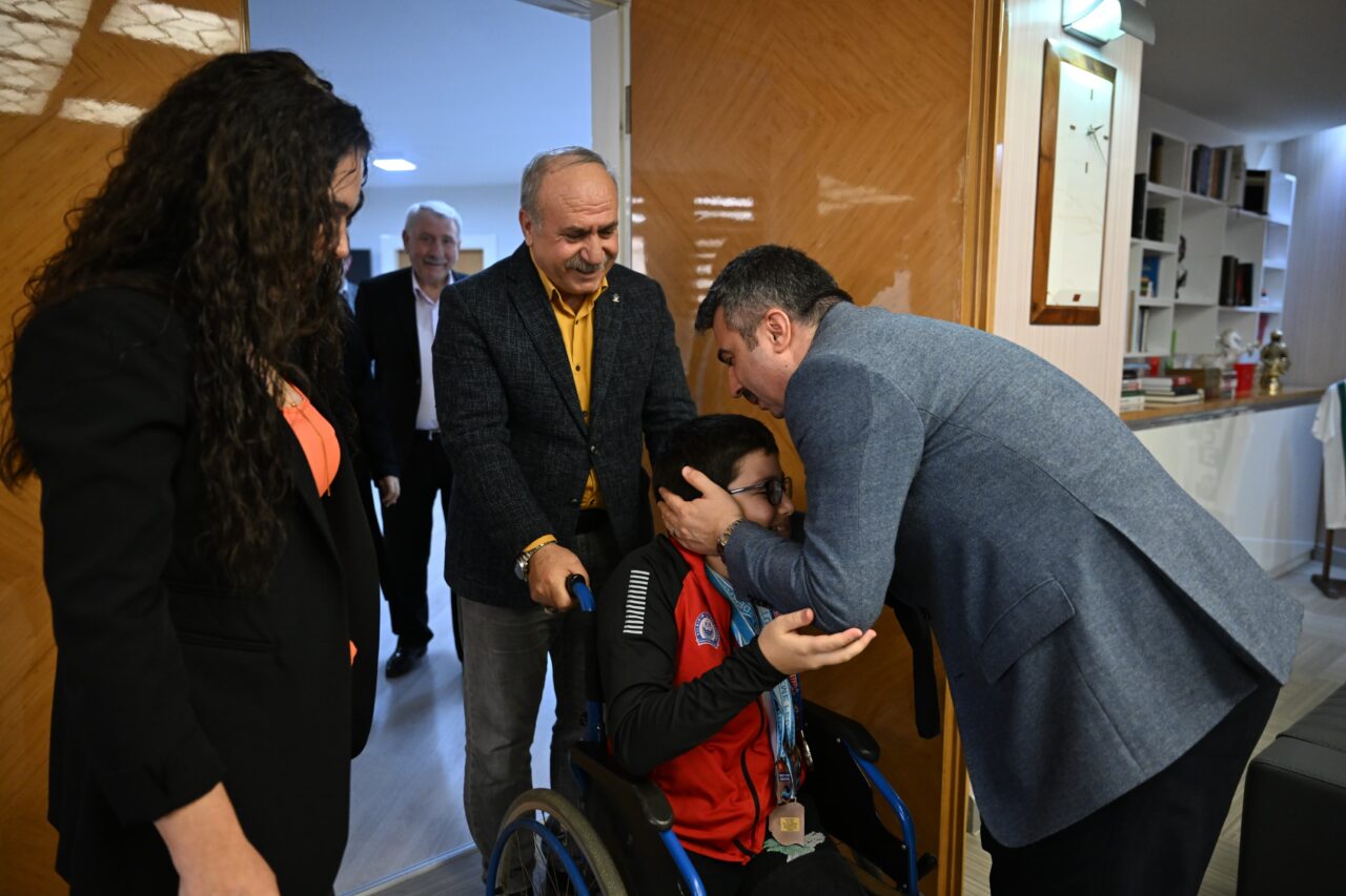 2020 yılından bu yana 2 bin 59 özel gereksinimli birey ve ailesine eğitim ve spor hizmeti verildiğini, şu anda 100 çocuğun aktif eğitim almaya devam ettiğini belirten Yılmaz, 4 bin 454 lisanslı sporcu bulunduğunu kaydederek, “İlçemizde şehrimizin dört bir yanından gelen geleceğin yıldızlarını yetiştiriyoruz. Yıldırım’ın parlayan yıldızlarından biri olan Muhammed Ali, her kulaçta engelleri geride bırakan bir şampiyon Muhammed Ali Biçer yavrumuz da tıpkı dünyaca ünlü boksör Muhammed Ali gibi adını geleceğe altın harflerle yazdıracak. Bizlere sayısız gurur yaşatan Muhammed Ali gibi tüm sporcularımızın yanında olmaya, onların hayallerine omuz vermeye devam edeceğiz. Çünkü inanıyorum ki bu pırıl pırıl yavrularımıza destek olunduğunda, engeller değil hayaller kazanır” diye konuştu.