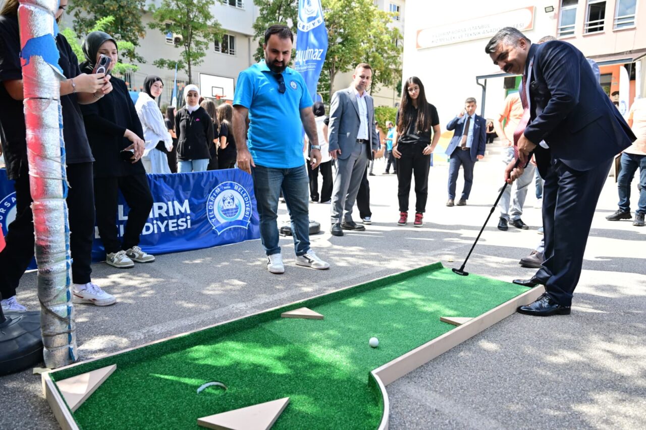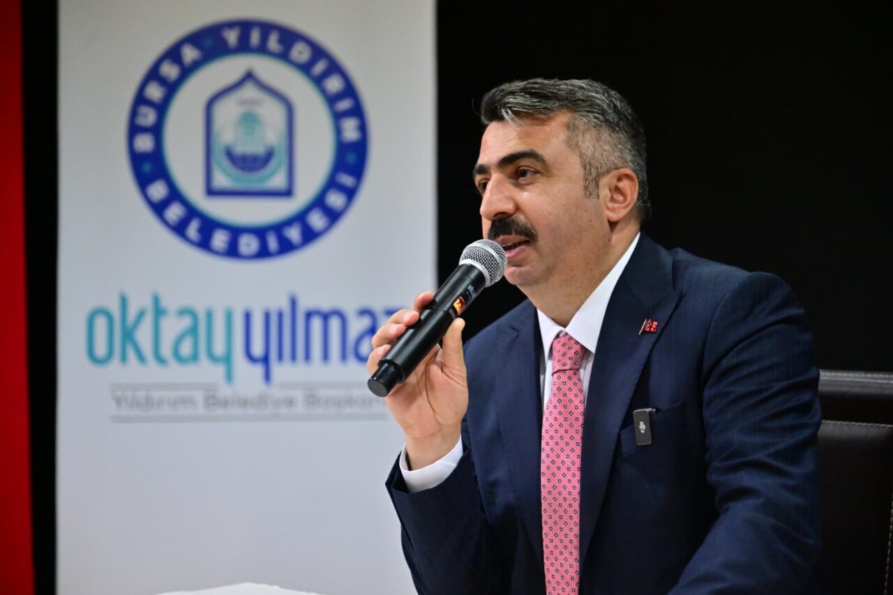 Yıldırım Belediyesi’nin, ‘Plastiksiz Yıldırım’ projesiyle ilgili gençlere bilgi veren Başkan Yılmaz, “Bugün burada sadece bir etkinlik düzenlemiyoruz. Aynı zamanda Yıldırım’ın gelecek vizyonunu birlikte inşa ediyoruz. Türkiye’nin ilk plastiksiz kütüphanesi olan Mümine Şeremet Uyumayan Kütüphanemizle başlattığımız bu yolculukta, yaklaşık 1 milyon plastik şişenin doğaya karışmasını önledik. Bu başarıyı bir üst seviyeye taşıdık ve “Plastiksiz Okul” modelini hayata geçirdik. Bugün İMKB Anadolu Lisesi’nde, Plastiksiz Yıldırım projemizin 5. okulundayız. Plastiksiz Okul projesi ile öğrencilerimize çelik mataralarımızı teslim ediyor ve su arıtma cihazımızı devreye alıyoruz. Bu yıl sonuna kadar 75 okulumuzda su arıtma cihazı kurmayı, öğrencilerimize yaklaşık 50 bin çelik matara dağıtmayı hedefliyoruz” diye konuştu.