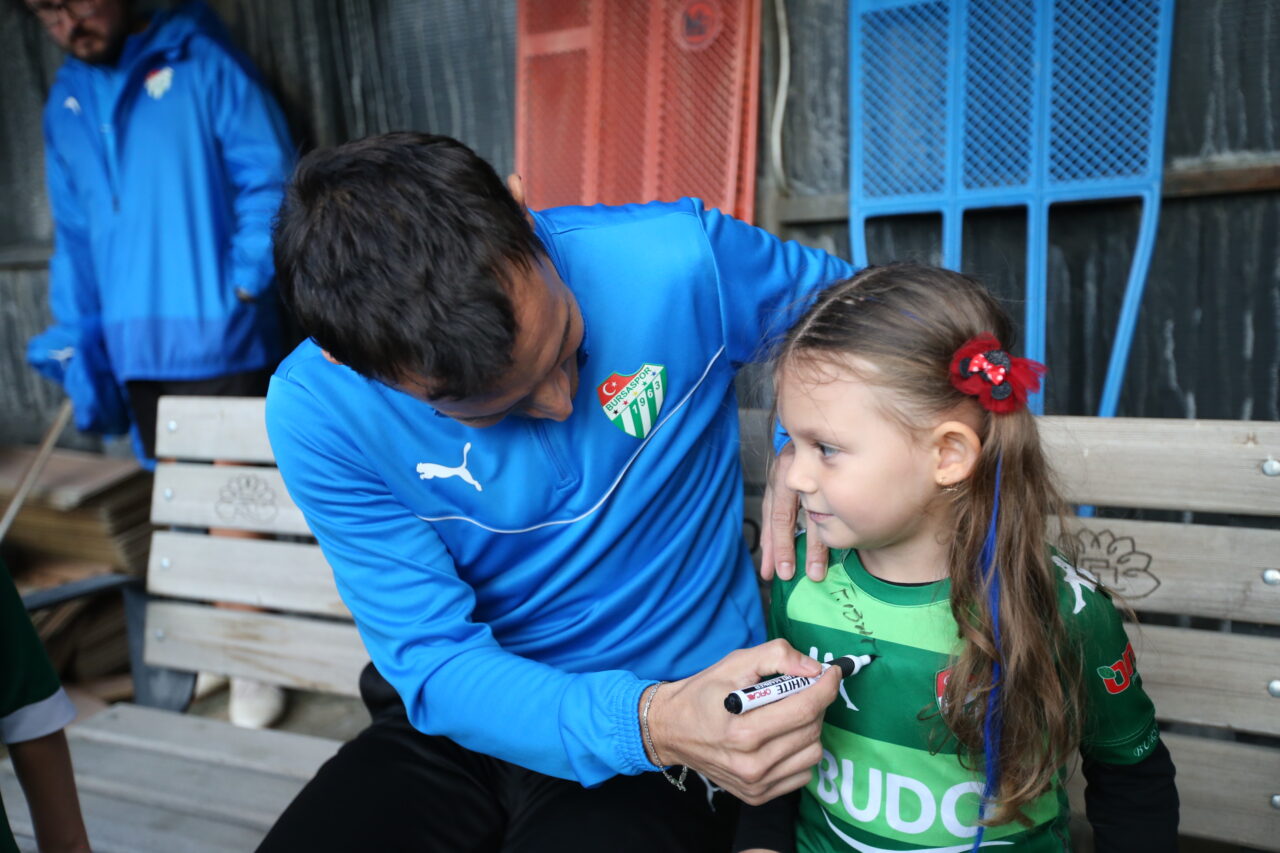 Oldukça renkli görüntülerin yaşandığı organizasyonda 300’den fazla çocuk, velileriyle birlikte Özlüce’ye gelerek Arjantinli efsane isimle hem fotoğraf çektirme hem de forma imzalatma fırsatı yakaladı.