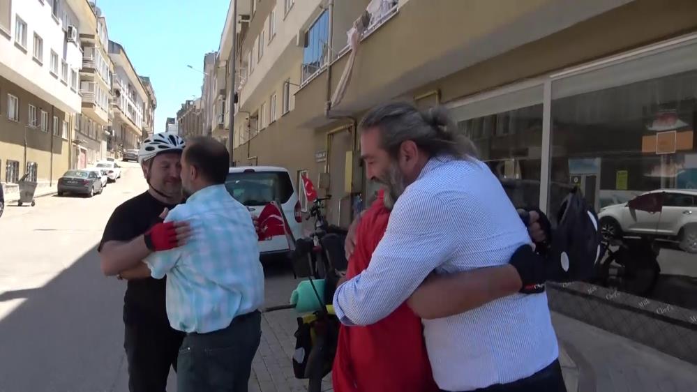 Yaklaşık 2 bin 500 kilometrelik yolu arkalarında bırakan ikili, Mustafa Öz’ün Bursa’nın Nilüfer ilçesindeki baba ocağına kadar bisiklet üzerinde geldi.