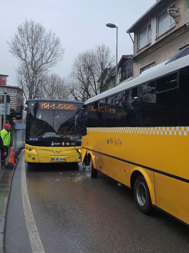 Yalıköy Mahallesi Çayır Caddesi’nde seyreden İETT otobüsü, karşı yönden gelen başka bir İETT otobüsüyle çarpıştı.