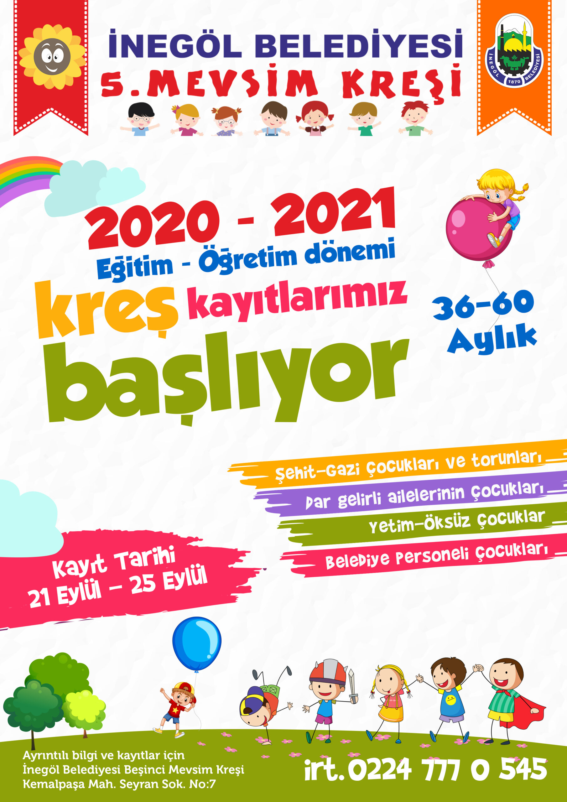 Ülkemizde Mart ayında başlayan covid-19 salgını nedeniyle geçtiğimiz eğitim öğretim yılının yarıda kaldığı Beşinci Mevsim Kreşi, yeni eğitim öğretim yılına hazır. Pandemi tedbirleriyle birlikte belirli kurallar çerçevesinde açılması planlanan kreşte daha önceki yıllarda olduğu gibi bu yıl da 36 ile 60 ay arası çocuklar (3-5 yaş) eğitim alabilecekler. 21 Eylül Pazartesi (bugün) başlayan kayıtların 25 Eylül Cuma günü mesai bitimiyle birlikte sona ereceği ifade edilirken, kreşten; şehit ve gazi çocukları ile torunları, dar gelirli ailelerin çocukları, yetim-öksüz çocuklar ve Belediye personelinin çocukları faydalanacak.