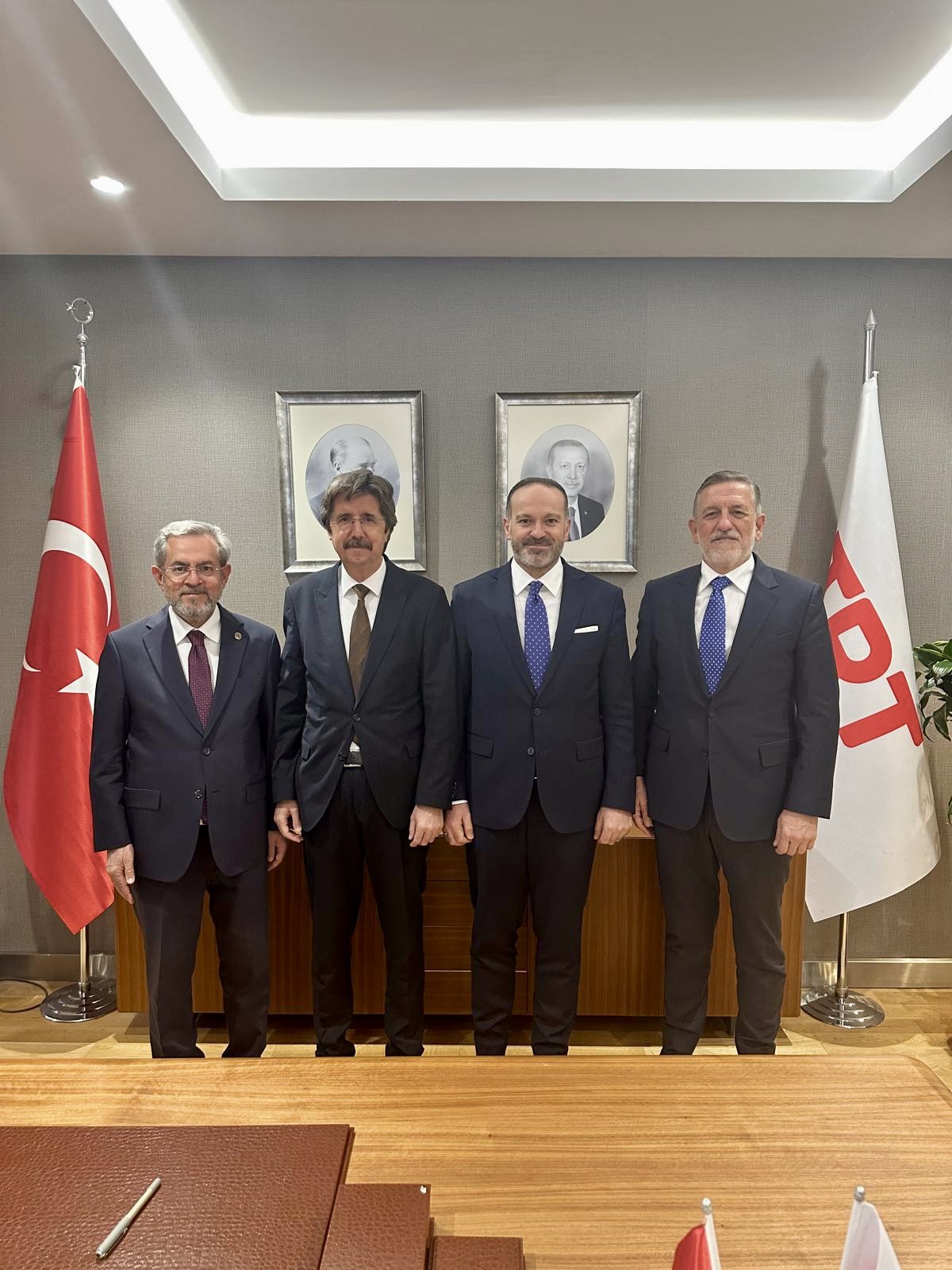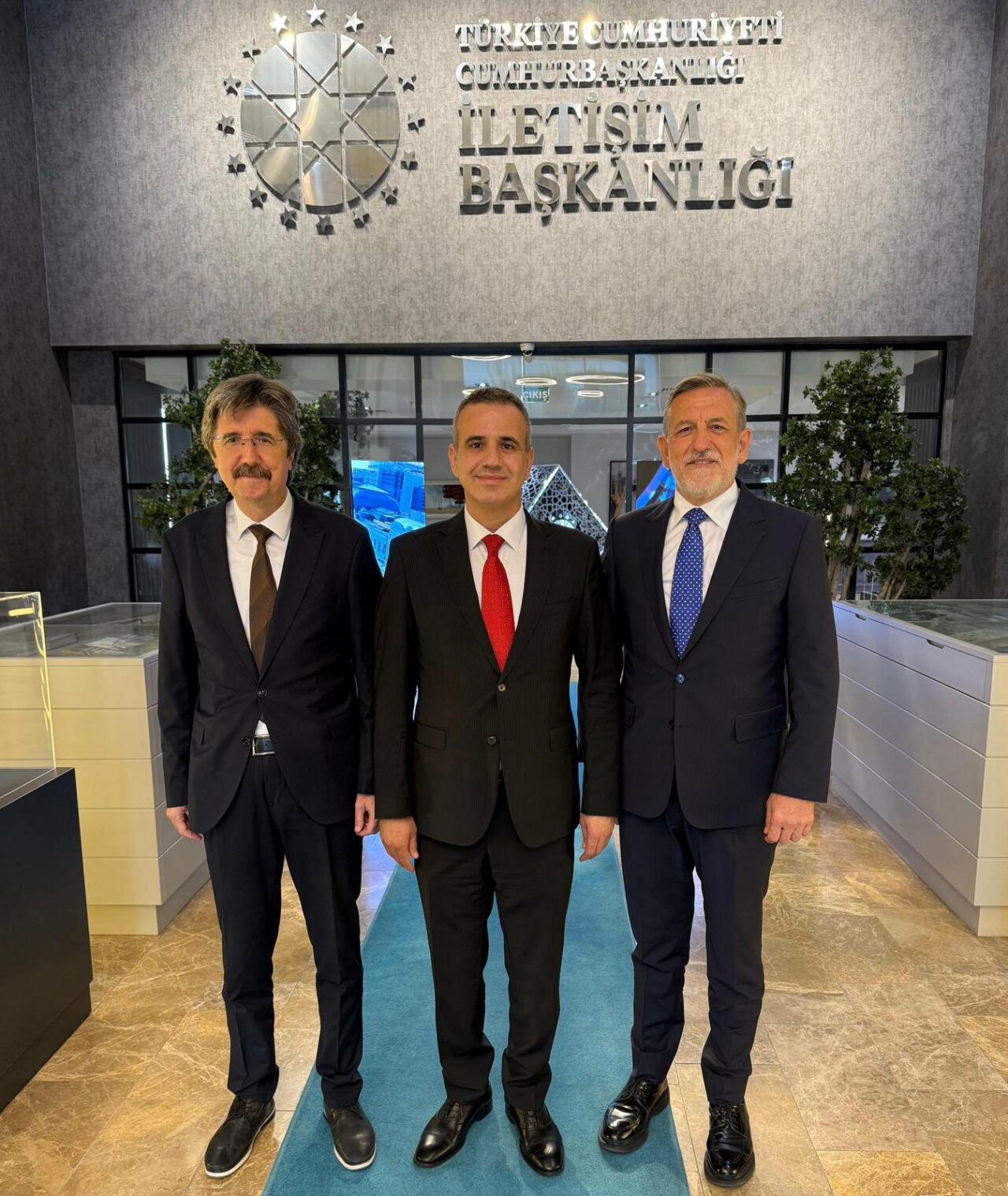 “TRT Yönetim Kurulu Başkanlığı görevine seçilen Uludağ Üniversitesi Rektörümüz Sayın Prof. Dr. Ferudun Yılmaz’ı, Ankara’daki TRT binasında ziyaret ettim. Ziyaretimizde TRT Genel Müdürü Sayın Prof. Dr. Mehmet Zahid Sobacı ile Ankara Üniversitesi Rektörü Sayın Prof. Dr. Necdet Ünüvar da yer aldı. Kendilerine nazik ev sahiplikleri için teşekkür ediyor, görevlerinde üstün başarılar diliyorum.”