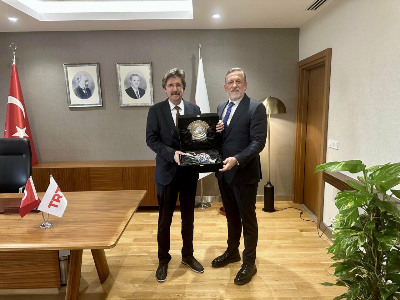 “Ankara Üniversitesi Rektörü ve Cumhurbaşkanlığı Sağlık ve Gıda Politikaları Kurulu Üyesi Prof. Dr. Necdet Ünüvar ile Bursa Ticaret ve Sanayi Odası (BTSO) Yönetim Kurulu Başkanı İbrahim Burkay’ı Ankara’daki TRT Genel Müdürlüğü’nde ağırladık. TRT Yönetim Kurulu Başkanlığına atanmam vesilesiyle gerçekleştirilen ziyarette Genel Müdürümüz Prof. Dr. Zahid Sobacı da hazır bulundu. Kurumlar arası işbirliği imkanlarını da görüştüğümüz nazik ziyaretlerinden ötürü Sayın Prof. Dr. Necdet Ünüvar Hocamıza ve Sayın İbrahim Burkay Başkanımıza teşekkür ediyoruz.”