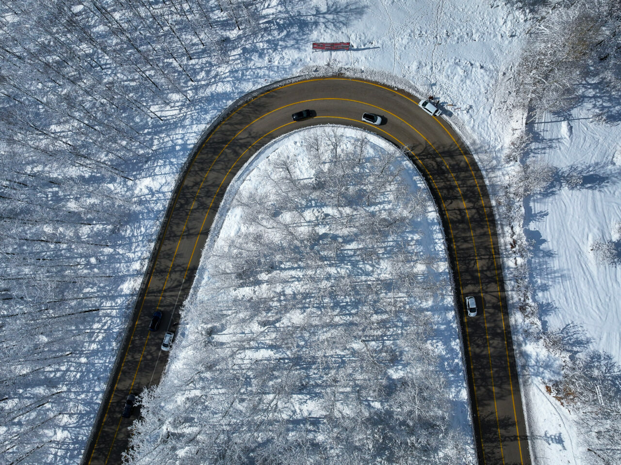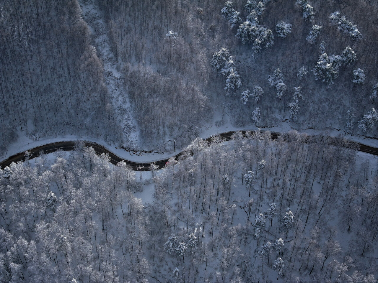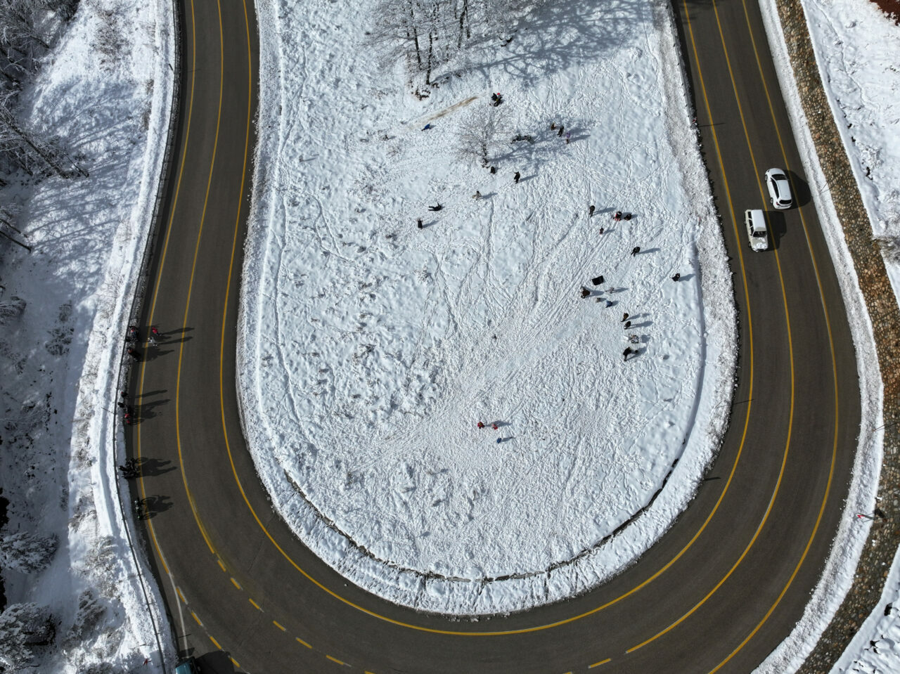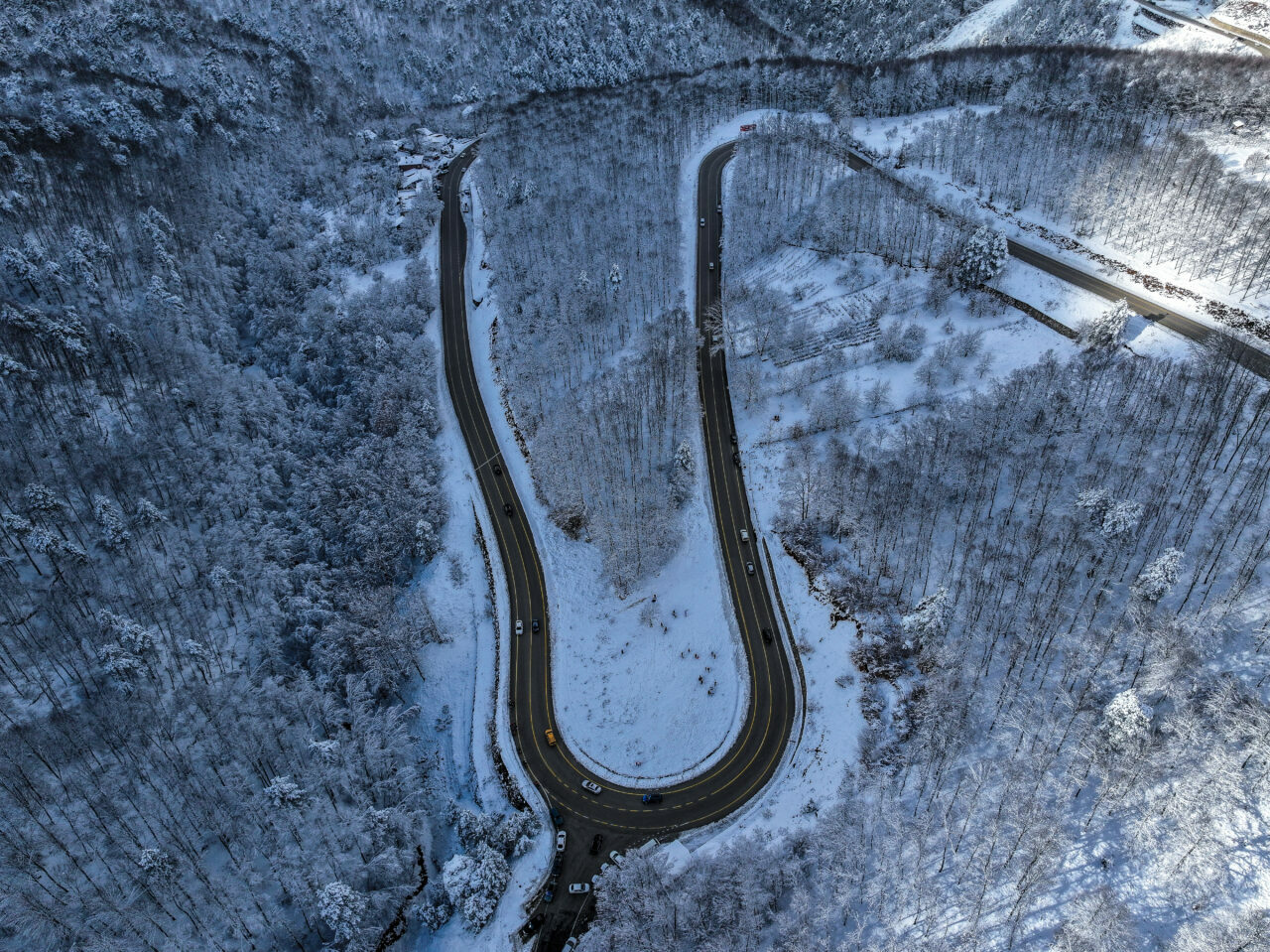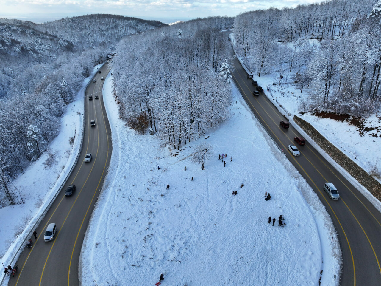 Uludağ, kar yağışının ardından beyaz örtüsü ve kıvrımlı yollarıyla dikkati çeken bir görünüme kavuştu.