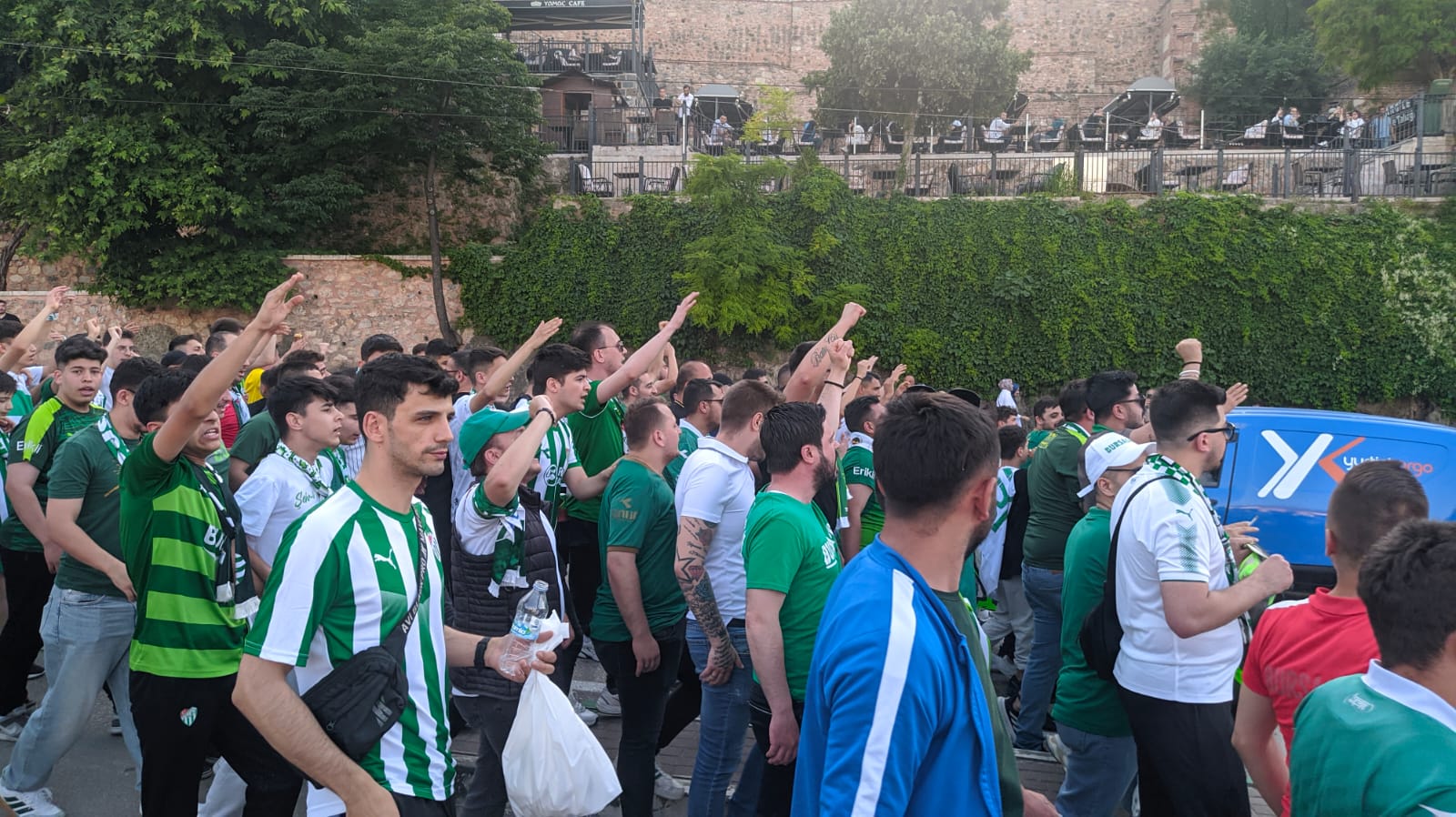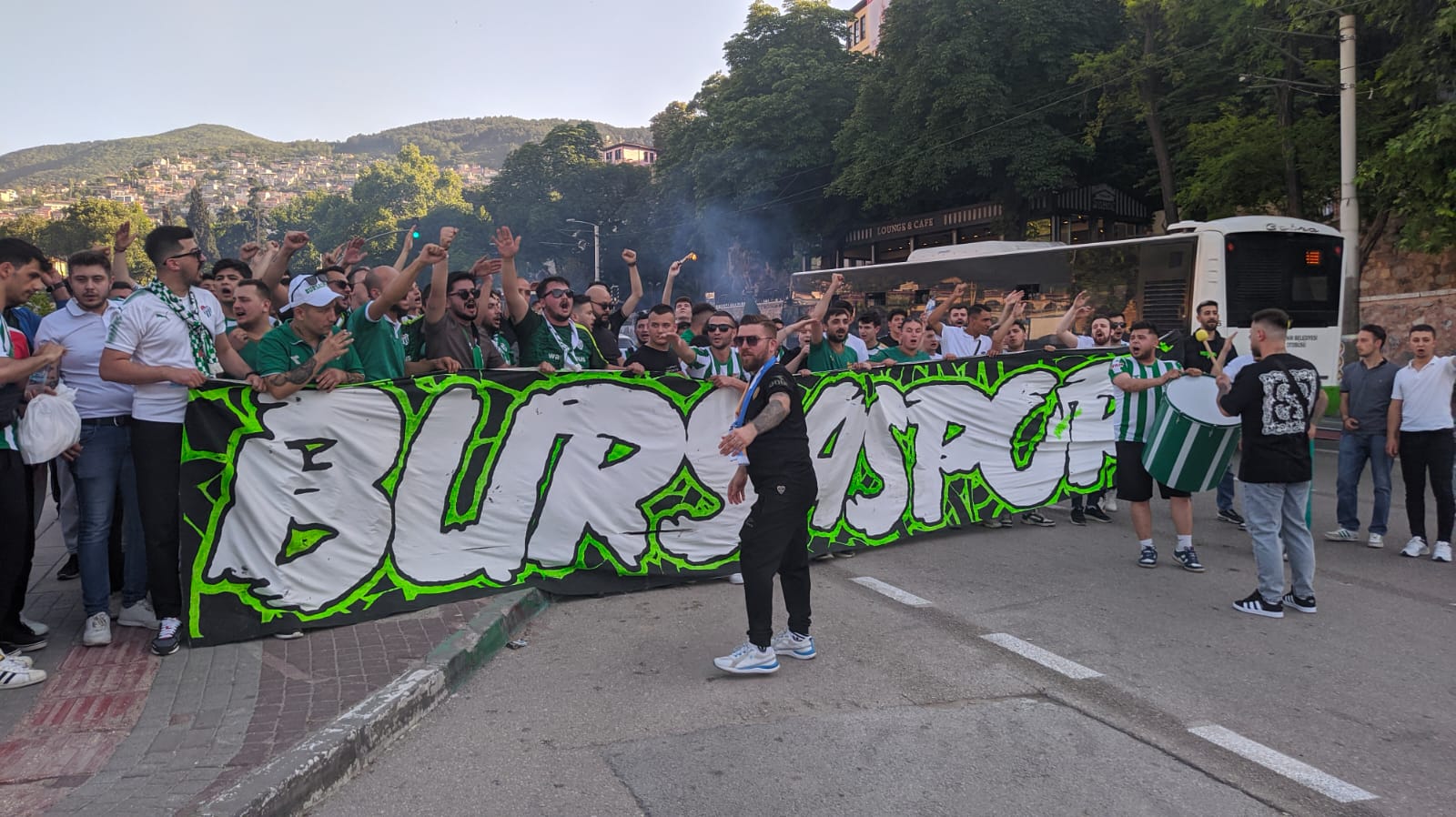Binlerce yeşil beyaz sevdalısı açtıkları pankartlarla ve meşalelerle birlikte Atatürk Stadı’nın olduğu bölgeyi doldurmaya başladı.