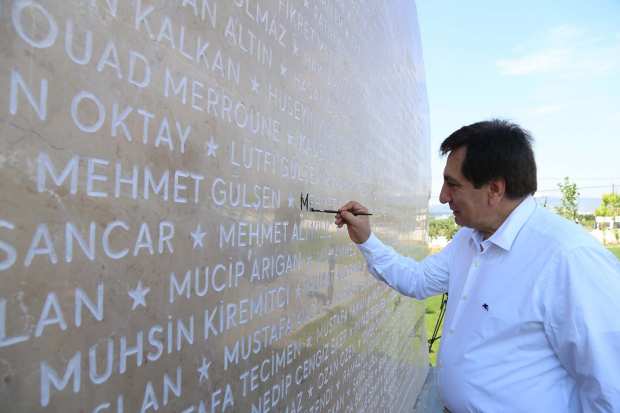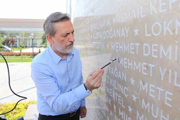 Bursa ekonomisinin çatı kuruluşu BTSO, örnek bir çalışmaya daha imza attı. BTSO, Türkiye’nin demokrasi tarihine geçen bir direnişin sergilendiği 15 Temmuz gecesinde şehit düşen 249 kahramanın isimlerini 107 ton ağırlığındaki bir anıtla yaşatacak. 15 Temmuz Şehitleri Mesleki Eğitim Külliyesi’nde yapılan anıt, Bursa Valisi İzzettin Küçük, BTSO Yönetim Kurulu Başkanı İbrahim Burkay ve Meclis Başkanı Remzi Topuk tarafından incelendi. Vali İzzettin Küçük, anıt hakkında Başkan Burkay’dan bilgiler aldı. Ardından Vali Küçük, Başkan Burkay ve Meclis Başkanı Topuk, ‘15 Temmuz Şehitler Anıtı’na şehitlerin isimlerini yazdı.