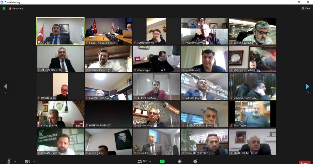 BTSO Meclis Başkanı Ali Uğur, Odanın pandemi dönemde sektörlerin önündeki engelleri kaldırmak adına gayret gösterdiğini belirterek, “Salgının ortaya çıktığı ilk günden bu yana yönetim kurulumuz, meclis ve komite üyelerimiz bu hususta önemli çalışmalar yürütüyor. Üretimi ve ticareti yeniden hızlandırmaya yönelik istişare toplantıları düzenliyoruz. Odamız çözüm odaklı bir anlayışla iş dünyamızın taleplerinin takipçisi olmaya devam edecek.” şeklinde konuştu.
