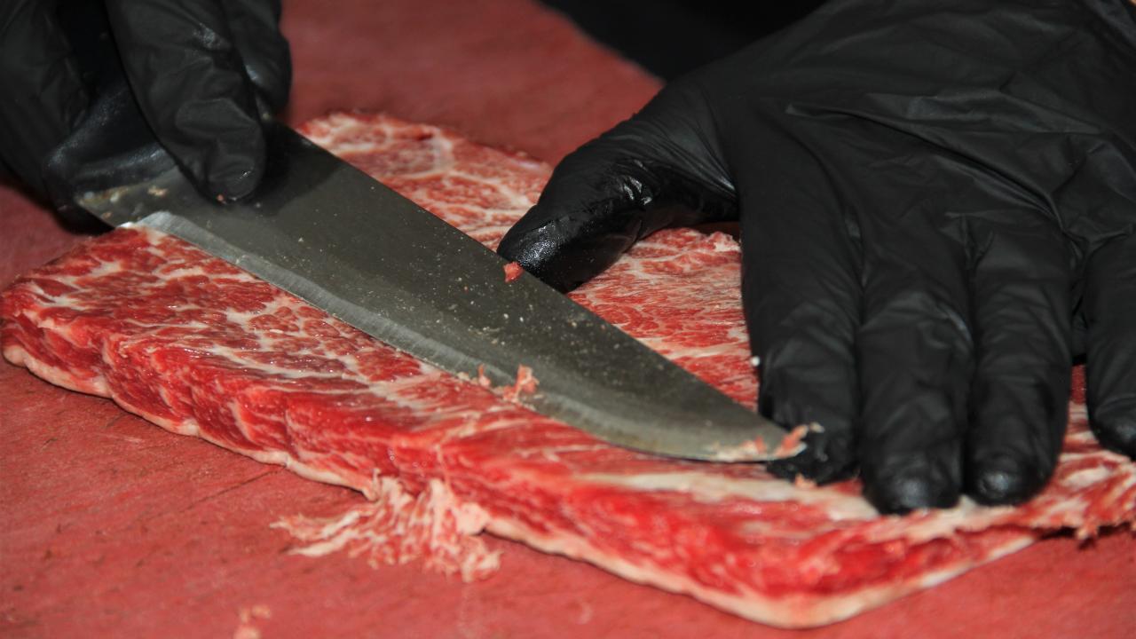 Özel karışım yemlerle ve uygun hava koşullarında büyütülen sığırların eti ise yetiştirilme aşamasında olduğu gibi meşakkatli bir işlemden geçiyor.