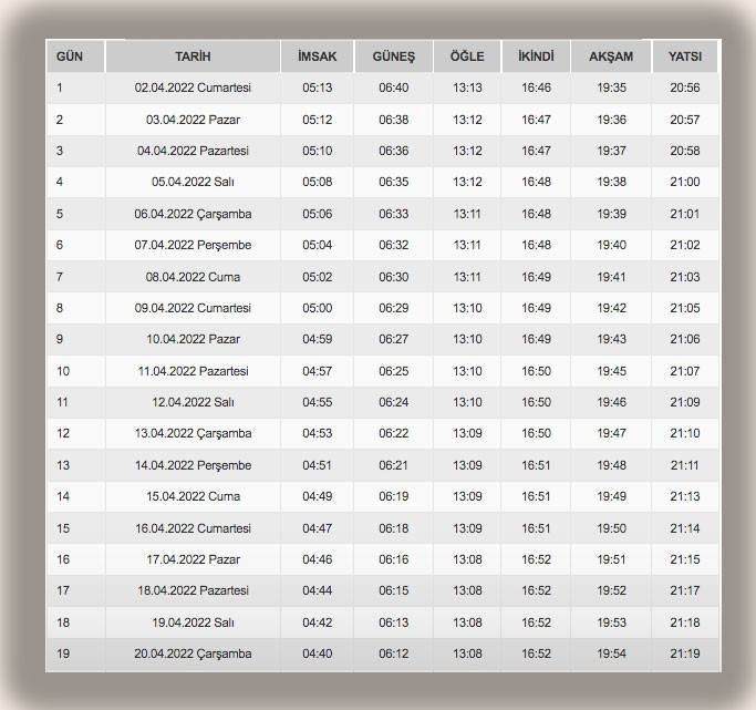 BURSA İÇİN İFTAR VE SAHUR SAATLERİ ŞÖYLE;