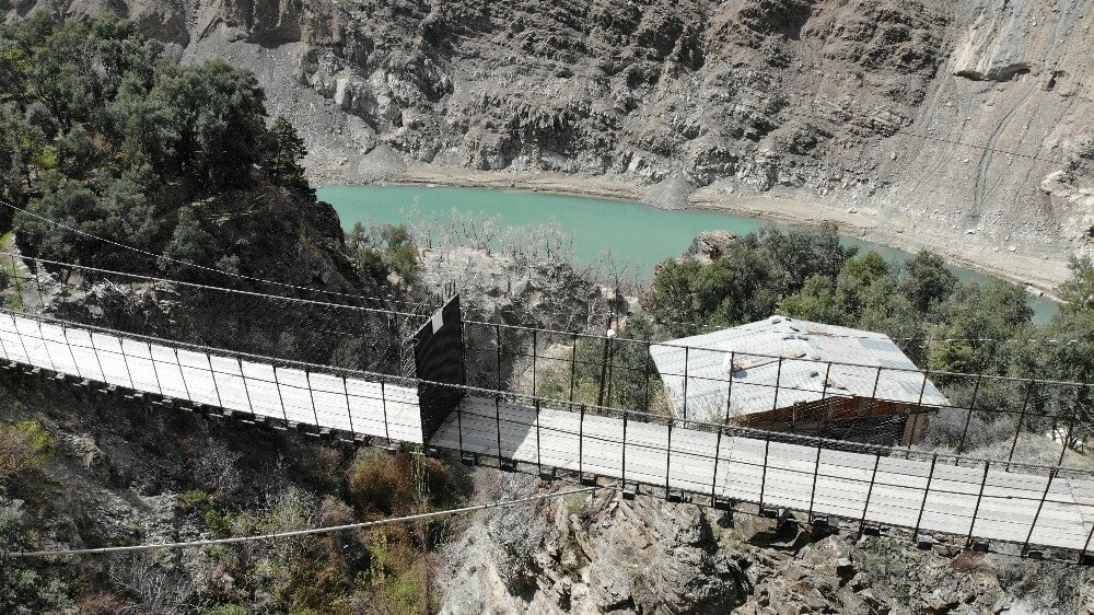Köyün bir bölümü ve yolları Deriner Barajı su tutmasının ardından sular altında kalırken, mahalleye ulaşımı sağlamak için DSİ 26. Bölge Müdürlüğü, yüksekliği 100 metre, genişliği 1,6 metre olan 70 metrelik asma köprü inşa etti.