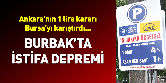 Olay Gazetesi yazarı İhsan Aydın bugünkü köşesinde, Büyükşehir Belediye Başkanı Alinur Aktaş’ın, Ankara’daki gibi 1 saate kadar ücretsiz, 1 saat sonrası tam gün 1 lira otopark uygulamasını Bursa’ya da getirmek için harekete geçtiğini, bu sistemin Bursa’da uygulanabilir olmadığını söyleyen BURBAK Genel Müdürü Kasım Şahin’in ise görevden affını isteyerek emeklilik dilekçesi verdiğini aktarıyor.