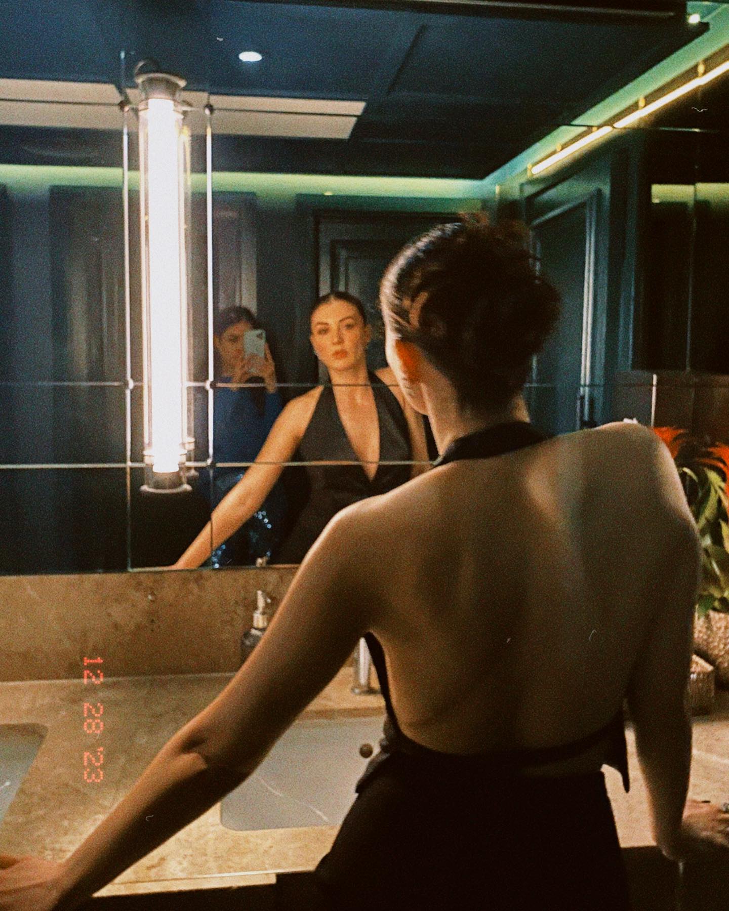 Burcu Özberk’in siyah göğüs ve derin sırt dekolteli tulumuyla verdiği pozları kısa sürede beğeni ve yorum yağmuruna tutuldu.